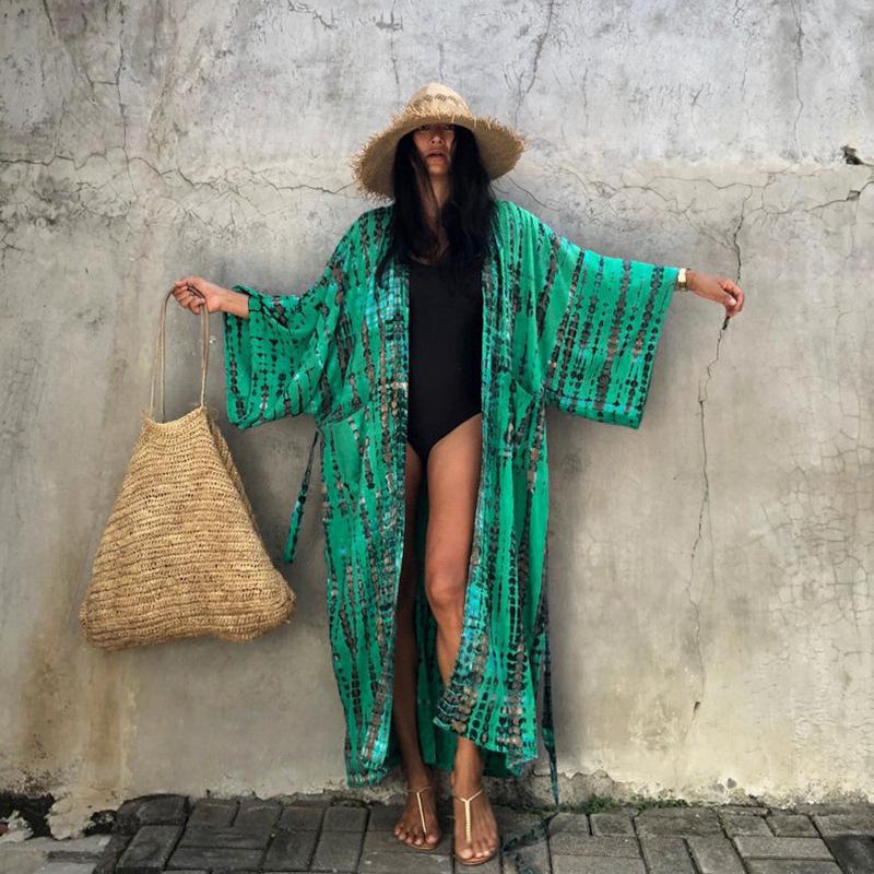 Женское шифоновое пляжное кимоно с принтом, длинный кардиган, блузка, шаль, свободные топы, пляжное кимоно, свободные топы с принтом, верхняя одежда, пляжная одежда 2021