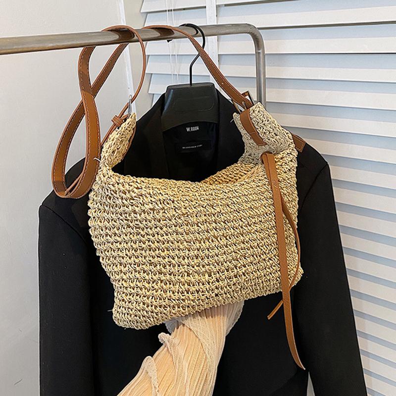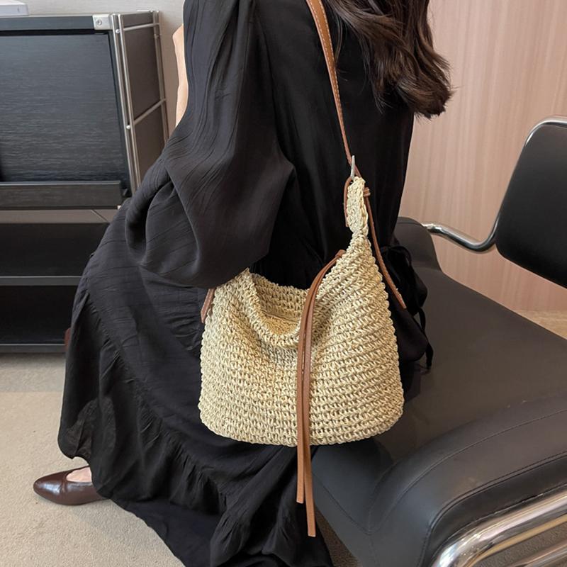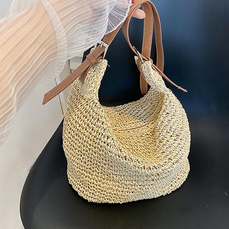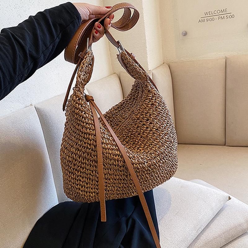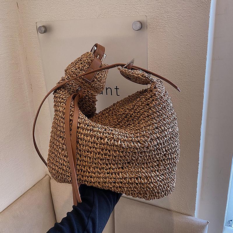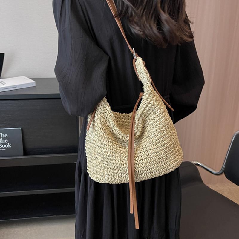 Yogodlns Женская тканая сумка в стиле ретро Sen Grass, новинка 2023 года, тканая сумка большой емкости для отдыха, модная сумка на плечо для пляжного отдыха, женская сумка