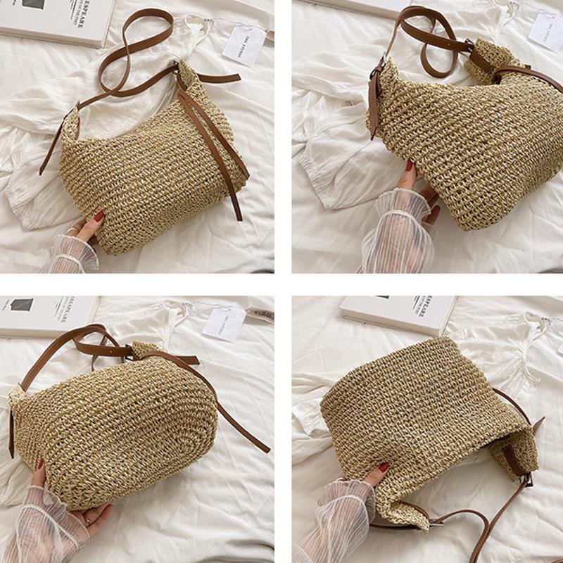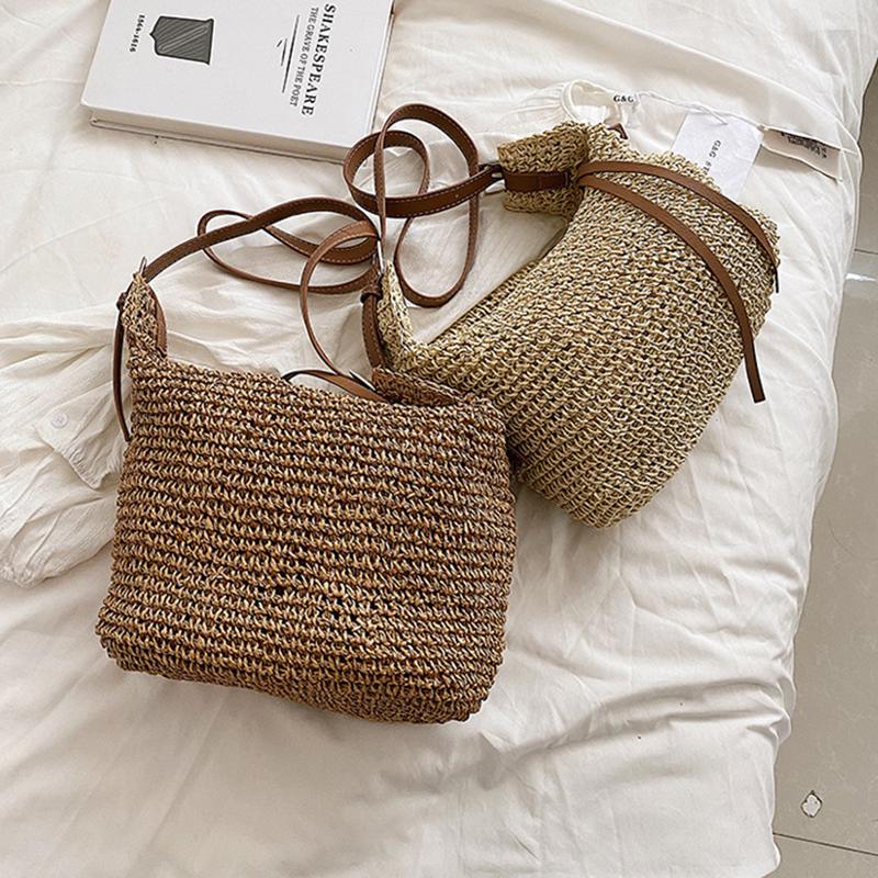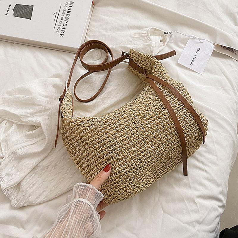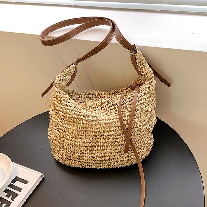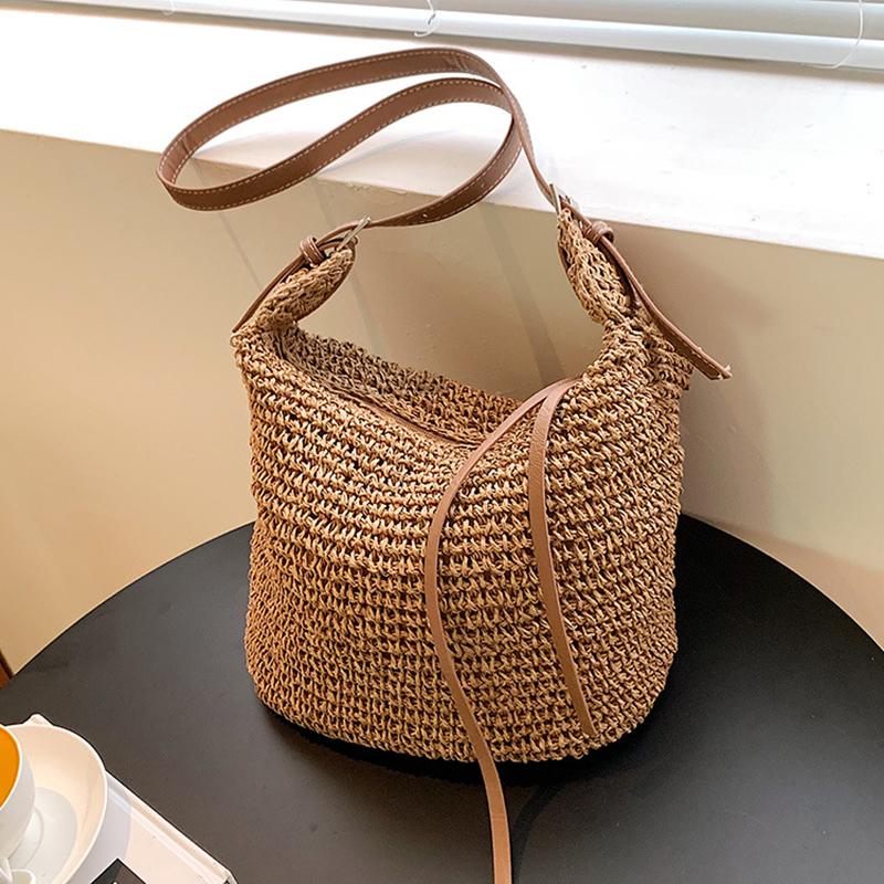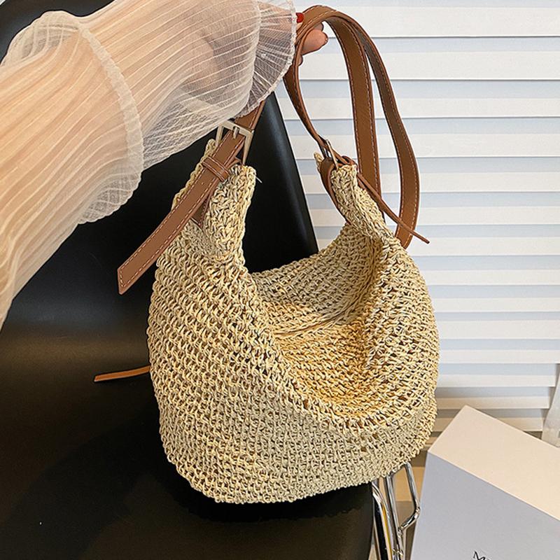 Yogodlns Женская тканая сумка в стиле ретро Sen Grass, новинка 2023 года, тканая сумка большой емкости для отдыха, модная сумка на плечо для пляжного отдыха, женская сумка