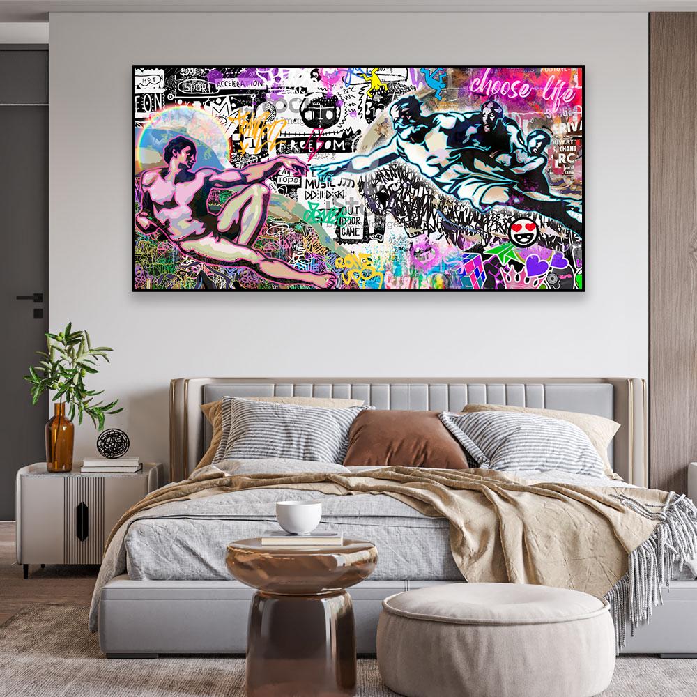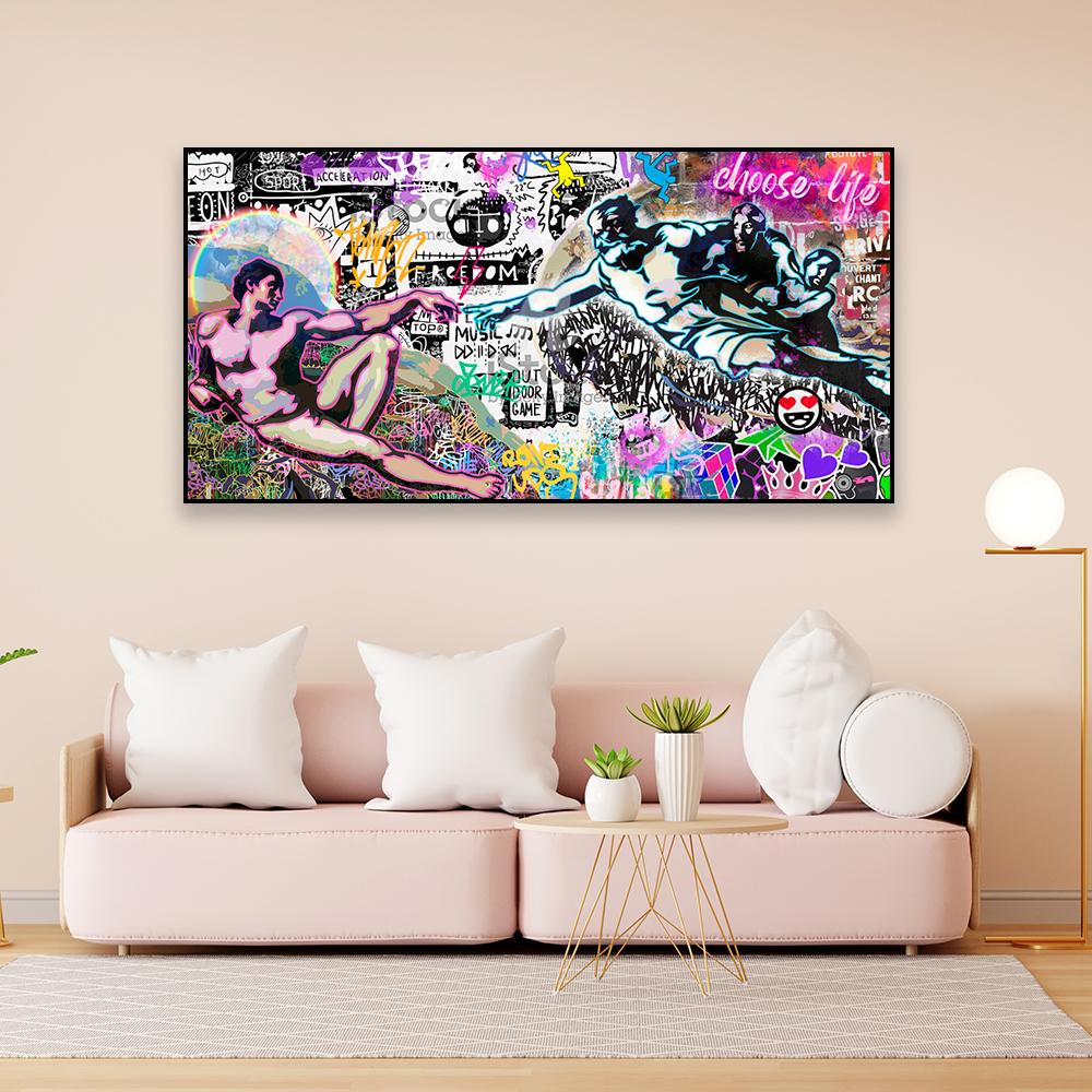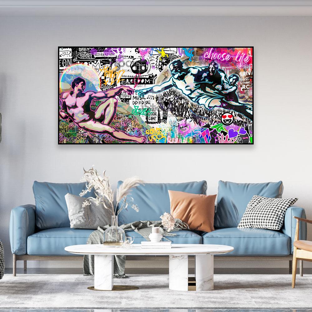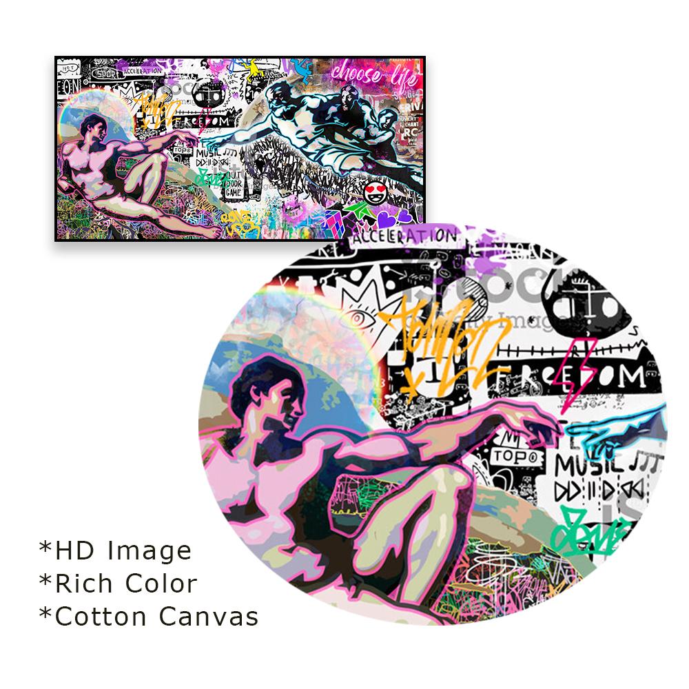Современный неоновый художественный постер, поп-стрит, граффити, принты «Сотворение Адама», большой холст, галерея, декор для дома, гостиной