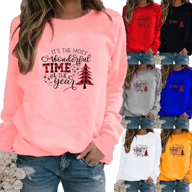 Осенне-зимний женский свитер с рождественской тематикой и принтом, повседневная толстовка с круглым вырезом и длинными рукавами, топ больших размеров