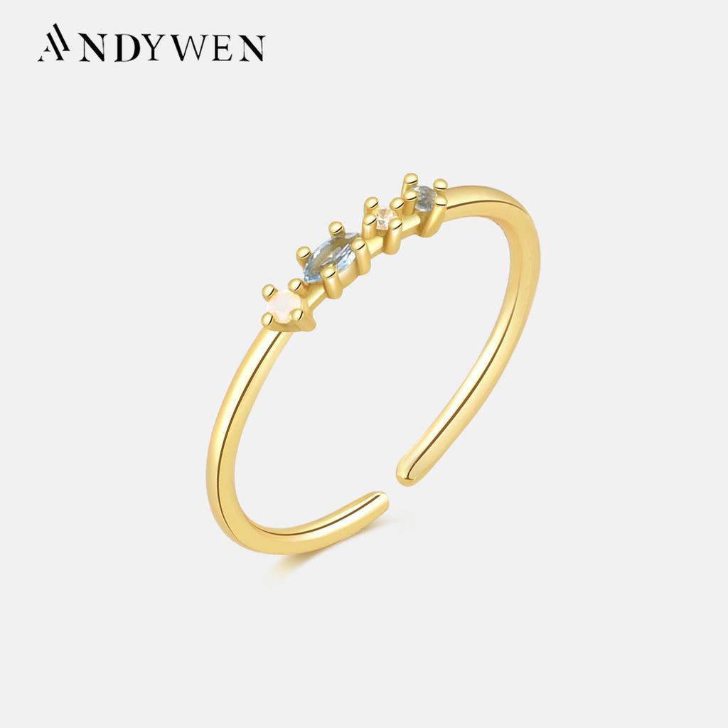 ANDYWEN 100% Стерлингового Серебра 925 пробы Радужный CZ Цвет Тонкий Тонкий Кольцо Изменяемого Размера Женское 2023 Свадебные Роскошные Драгоценности