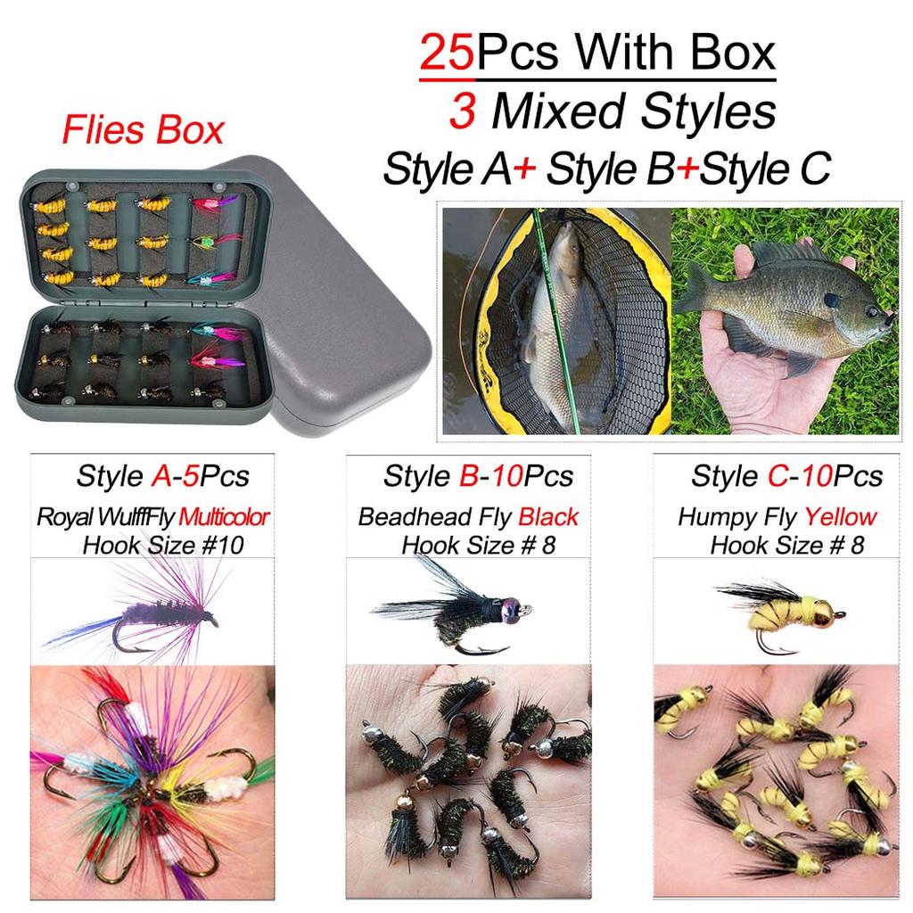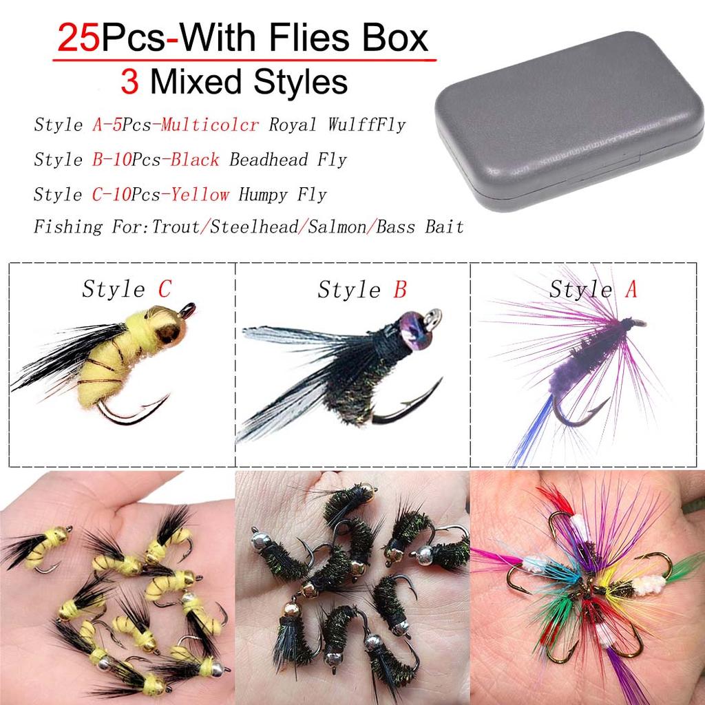 25 шт./кор. сухая/мокрая форельная наживка для ловли форели, черная муха с головкой из бисера, хампи-муха, приманка для искусственных насекомых Royal WulffFly для форели/стилхеда/лосося/баса