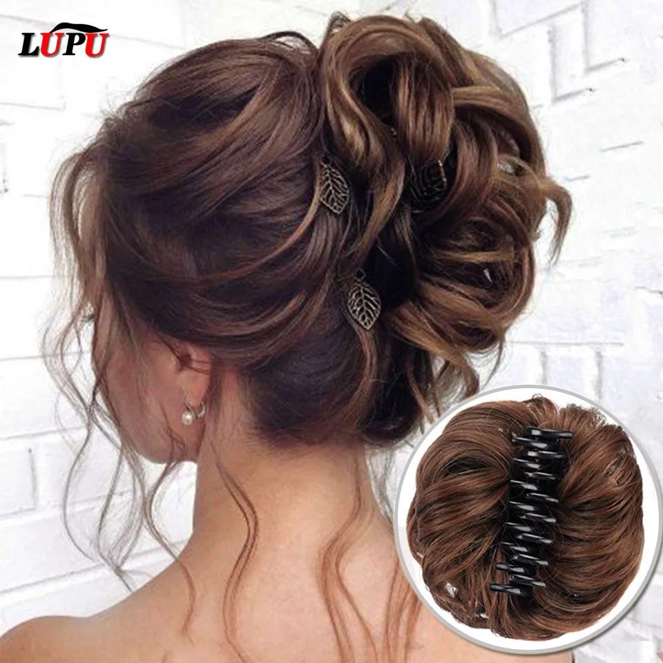 Шиньон, кусок волос, вьющийся беспорядочный пучок, хвостик, наращивание волос, резинка для волос, шиньоны для женщин, синтетические волосы, булочка, зажим на когтях