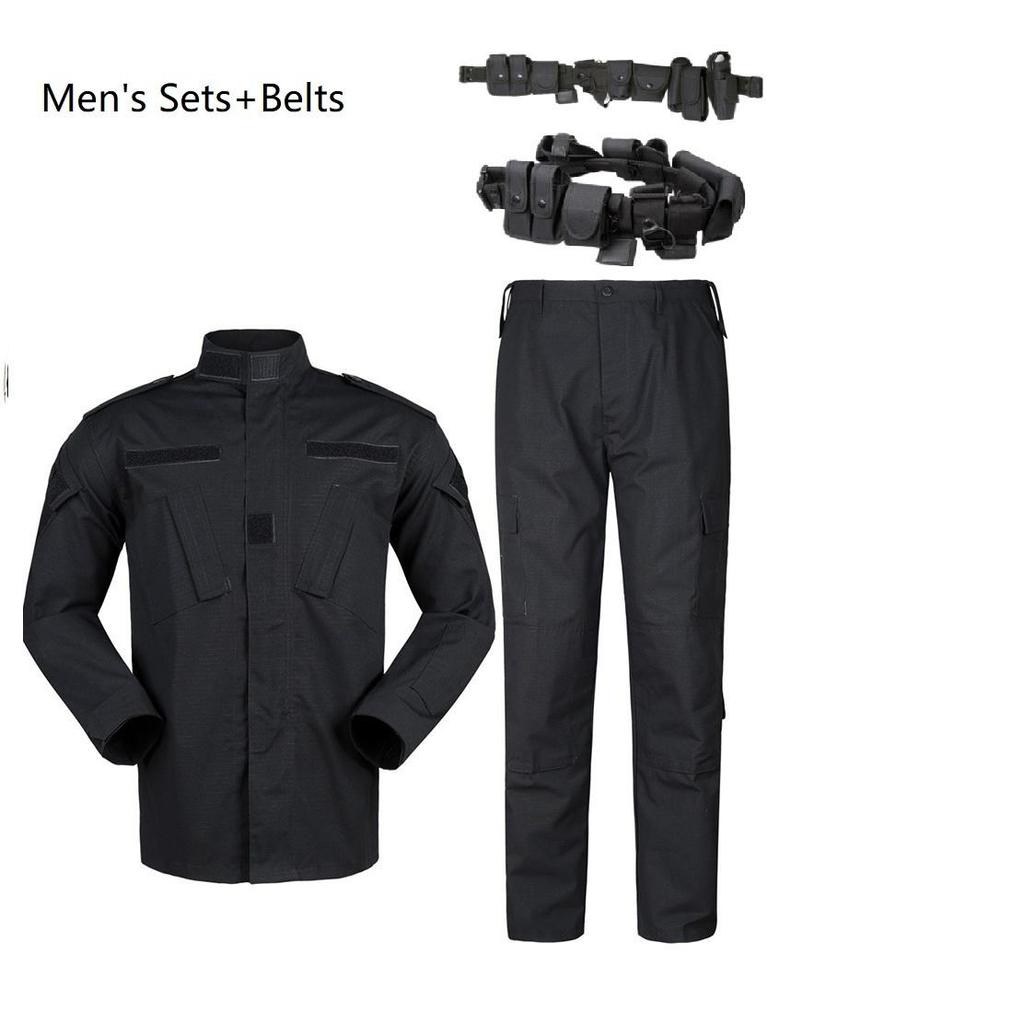 Черная спецодежда, костюм из рипстопа, блузка, брюки-карго, комплект униформы охраны с ремнем безопасности