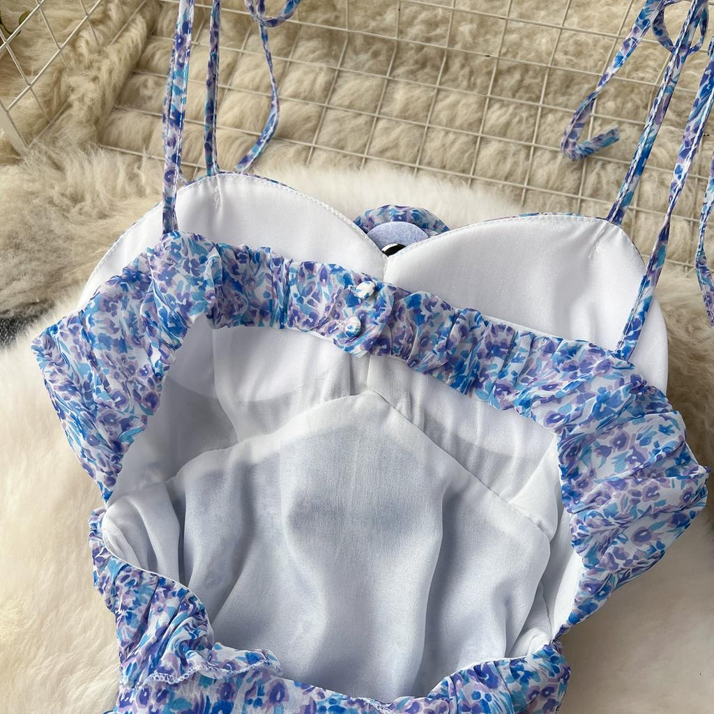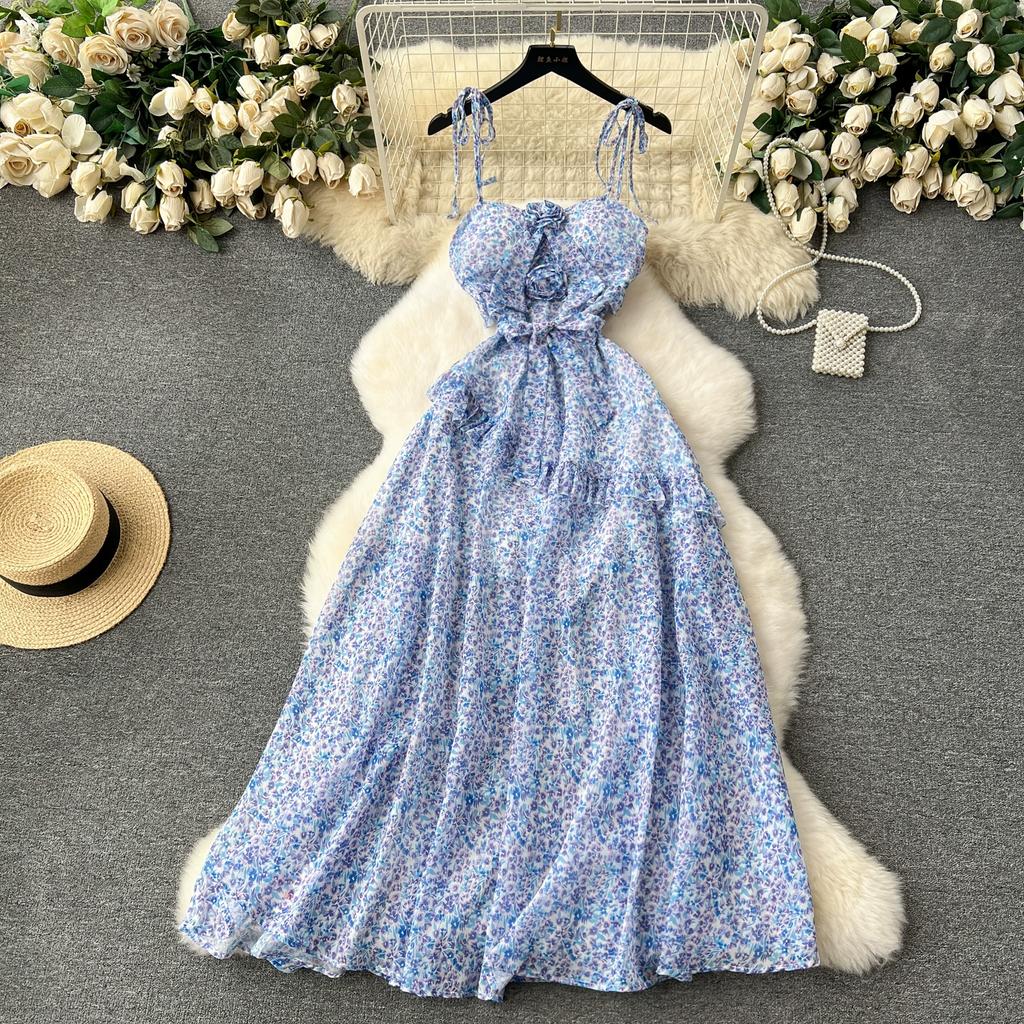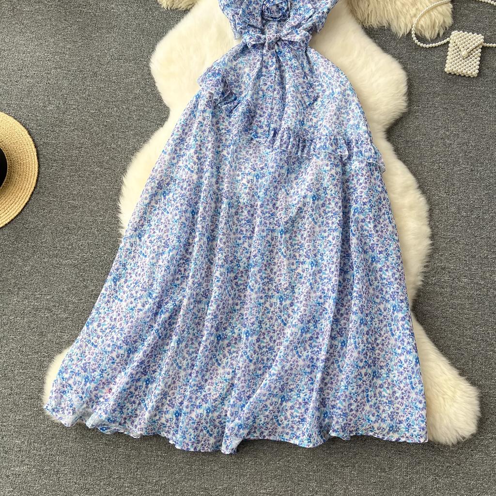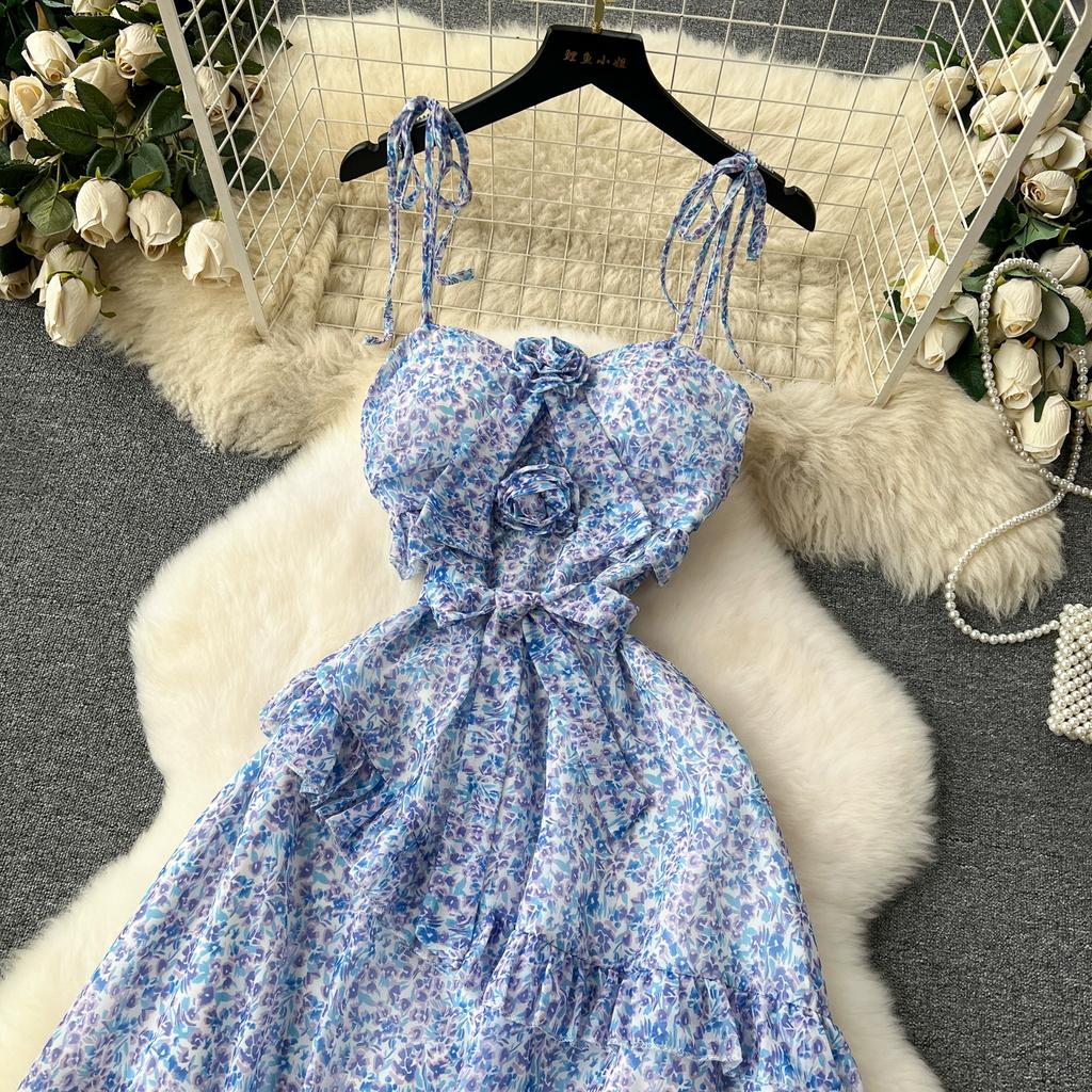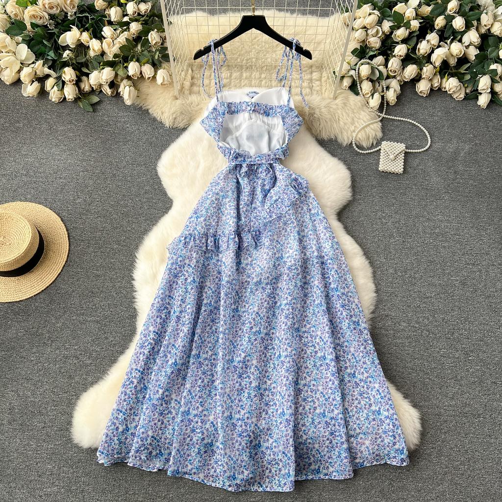 Летние женские шифоновые сарафаны на тонких бретельках с цветочным принтом, сексуальные праздничные пляжные с открытой спиной