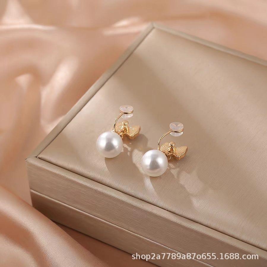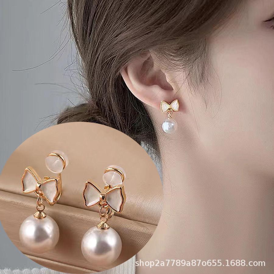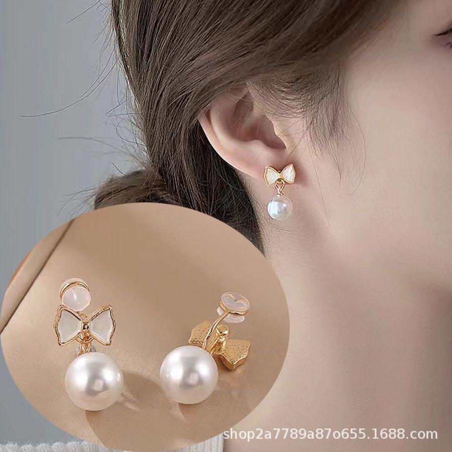 Стильные зажимы для ушей с бантом из искусственного жемчуга для женщин. Сладкие зажимы для ушей без пирсинга.