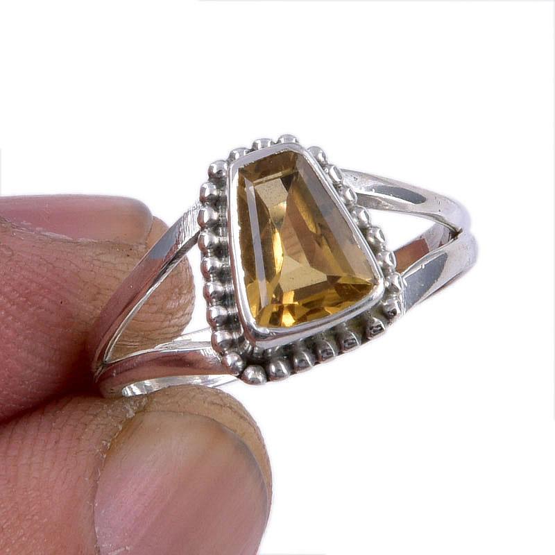 Natural Citrine Gemstone Handmade 925 Sterling Silver Jewelry Ring Size 6.5 m3h31