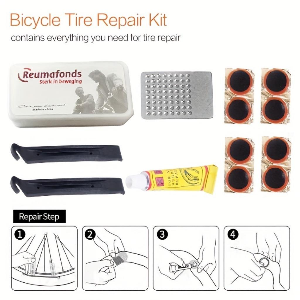 Комплект для ремонта велосипедных шин — универсальный набор резиновых клеевых стержней для горного велосипеда — незаменимый аксессуар для шоссейных велосипедистов и велосипедистов по бездорожью.