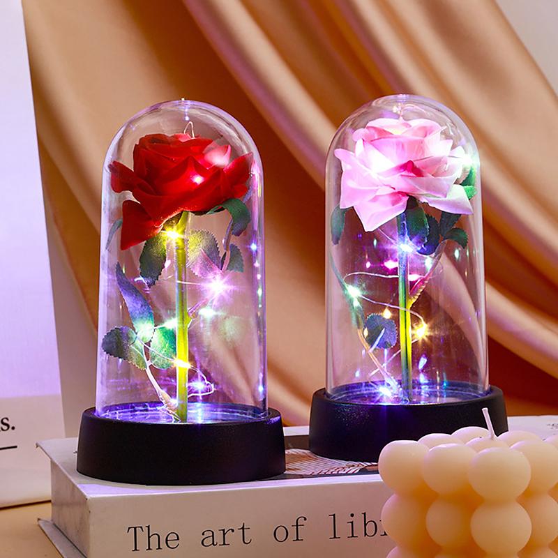 Вечные искусственные розы цветы подарок на день святого валентина для девушки светодиодная фольга цветок свадьба креативный настольный декор подарки