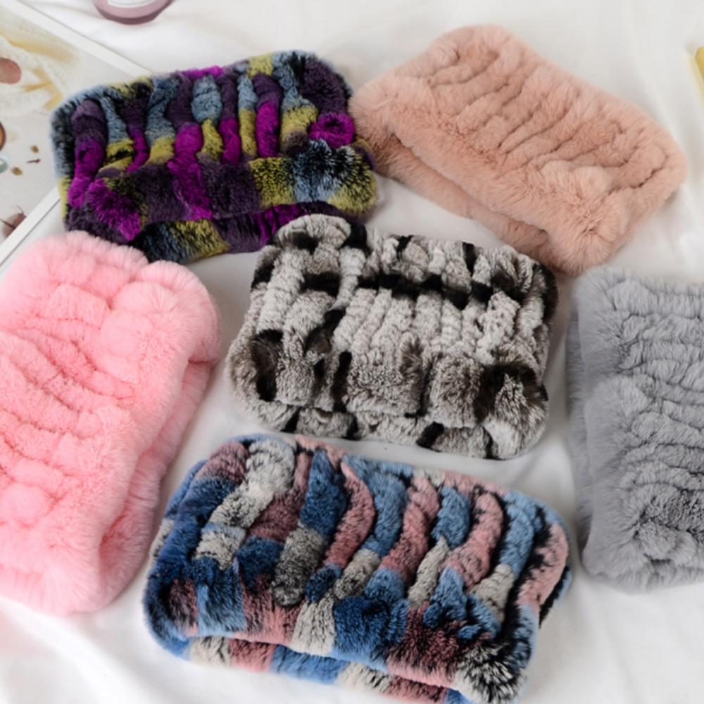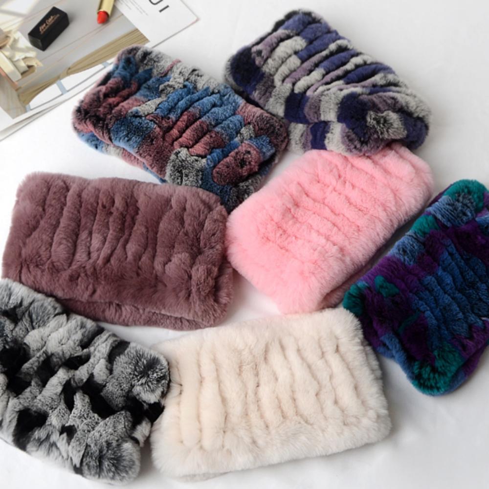 Женский шарф из эластичного меха ручной работы, вязаный шарф из натурального меха кролика рекс, повязки на голову для девочек, кольцо из натурального меха, капюшон, шарфы-снуд, зимние шарфы