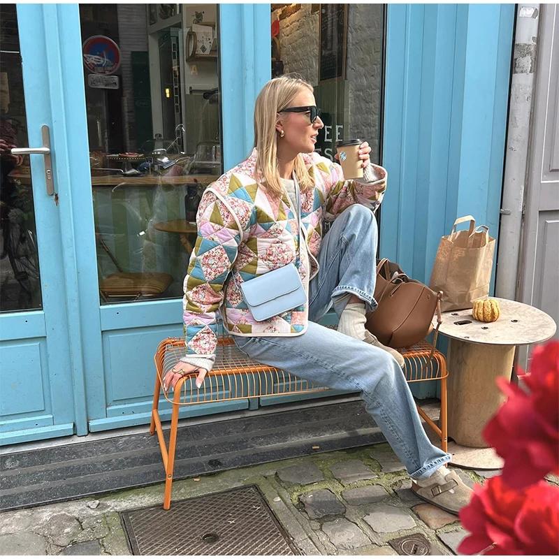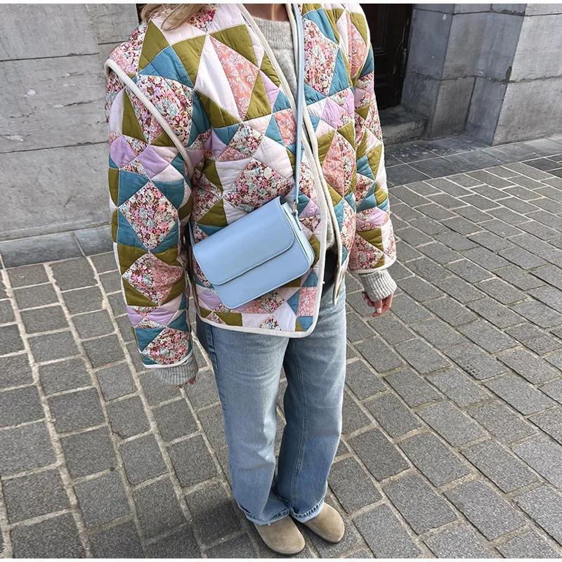 Женская куртка большого размера с принтом, контрастного цвета, однобортное пальто с длинным рукавом и V-образным вырезом, зимняя женская толстая теплая верхняя одежда 2024 года