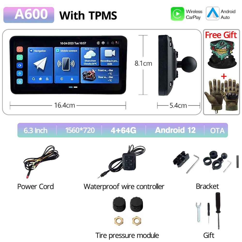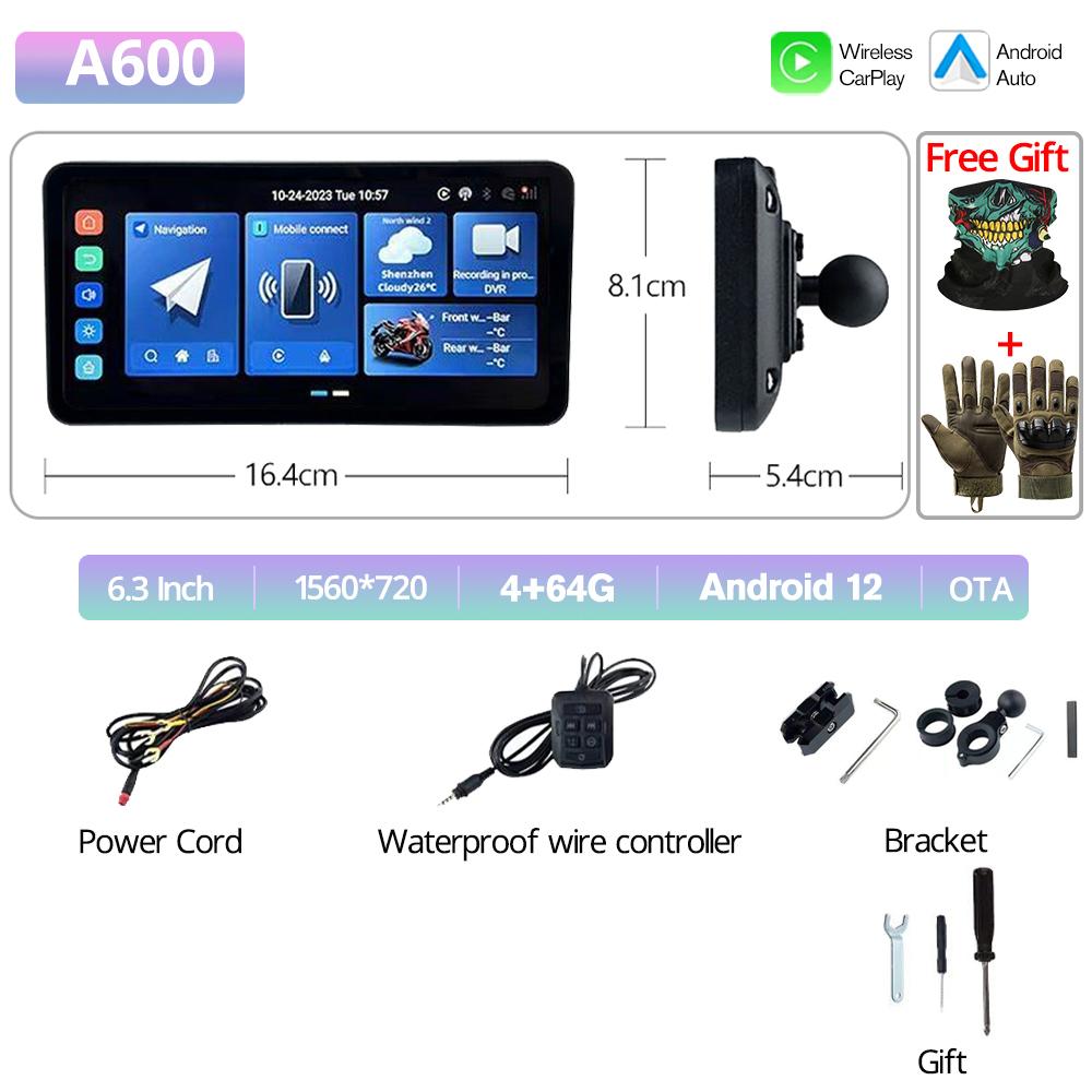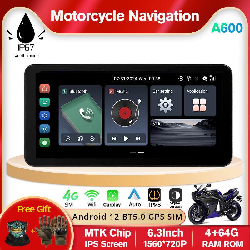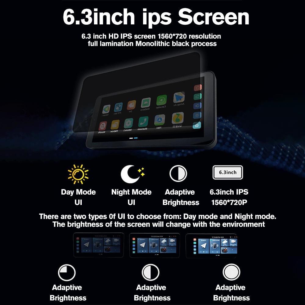 6,3-дюймовый портативный мотоциклетный ЖК-дисплей GPS пылезащитный IPX7 водонепроницаемый для беспроводного Apple CarPlay и Android Auto