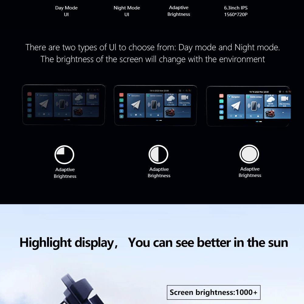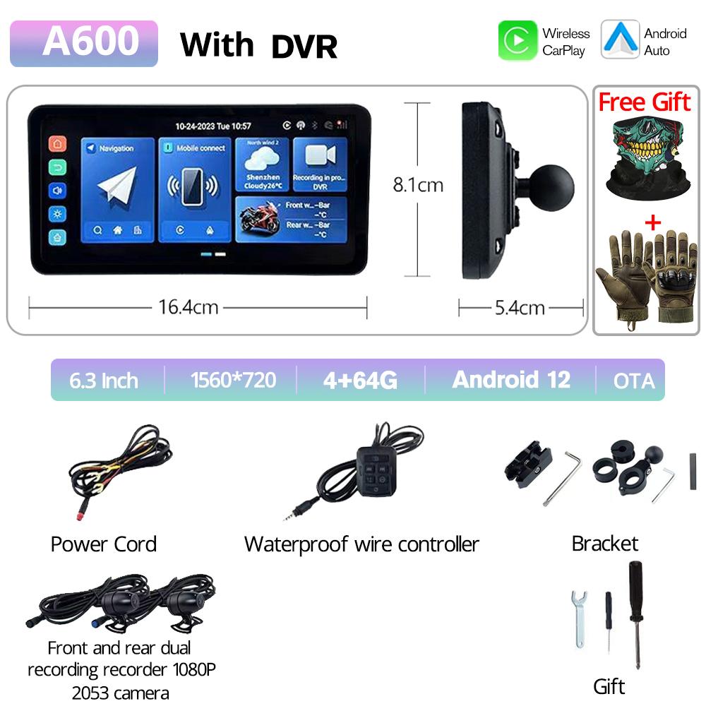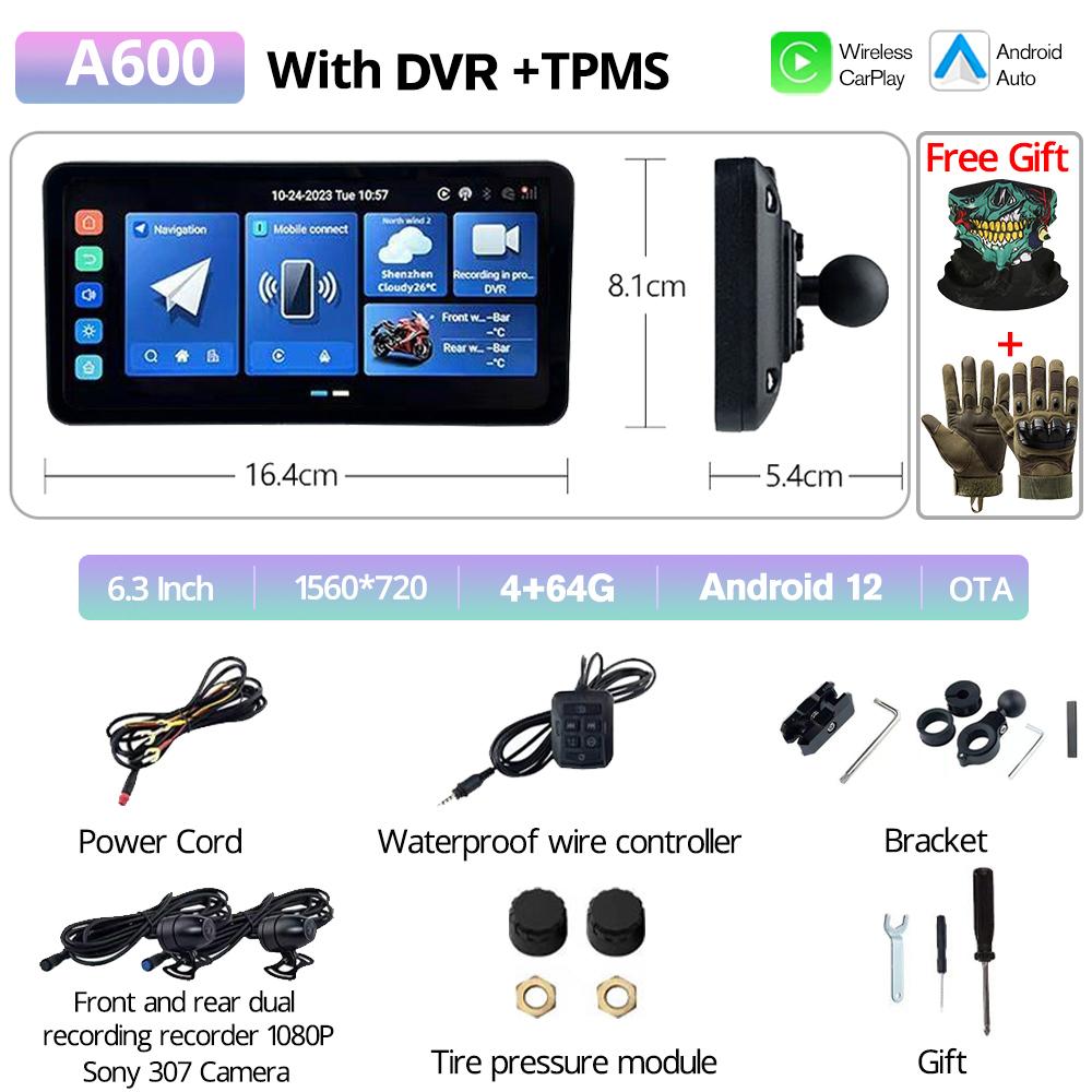 6,3-дюймовый портативный мотоциклетный ЖК-дисплей GPS пылезащитный IPX7 водонепроницаемый для беспроводного Apple CarPlay и Android Auto