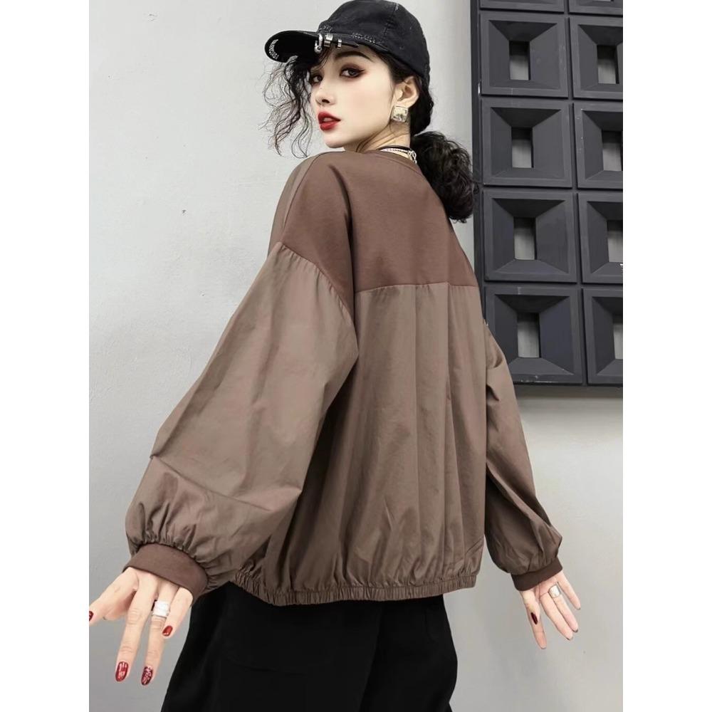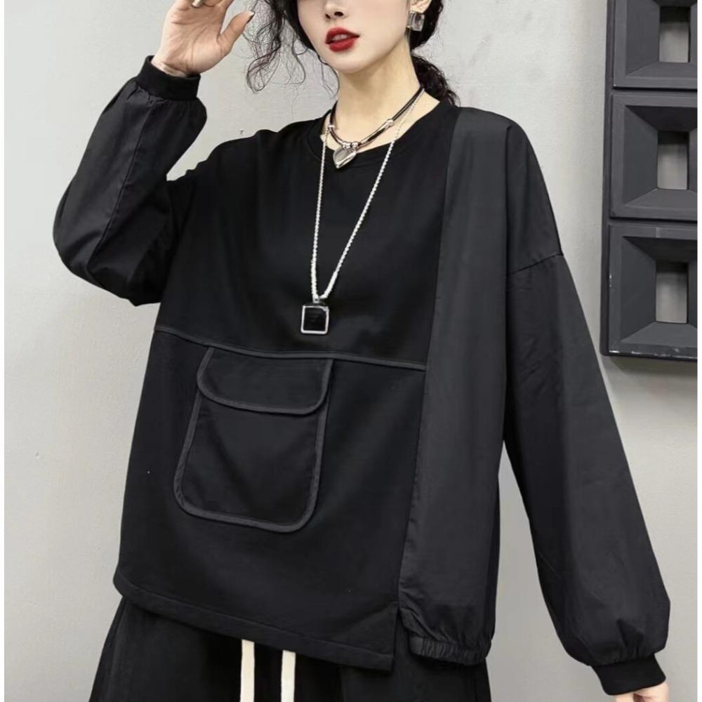 DIMANAF 2024 Осень Однотонная Эластичная Футболка Женская Сплайсированная Печать Длинные Рукава Свободные Топы Футболки