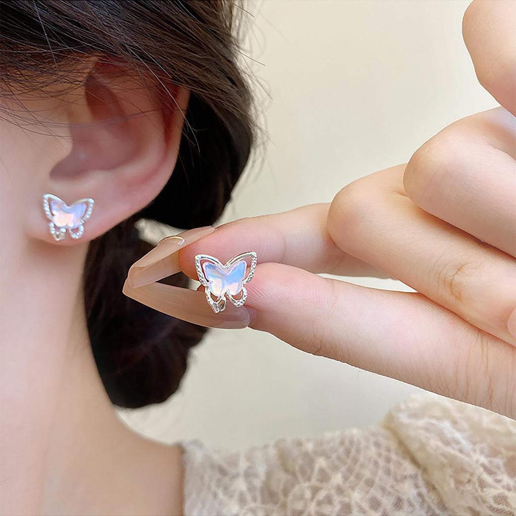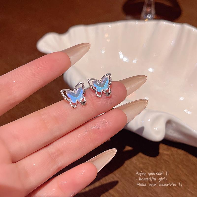 Свежие универсальные темпераментные градиентные мечтательные синие полые серьги-бабочки для женщин