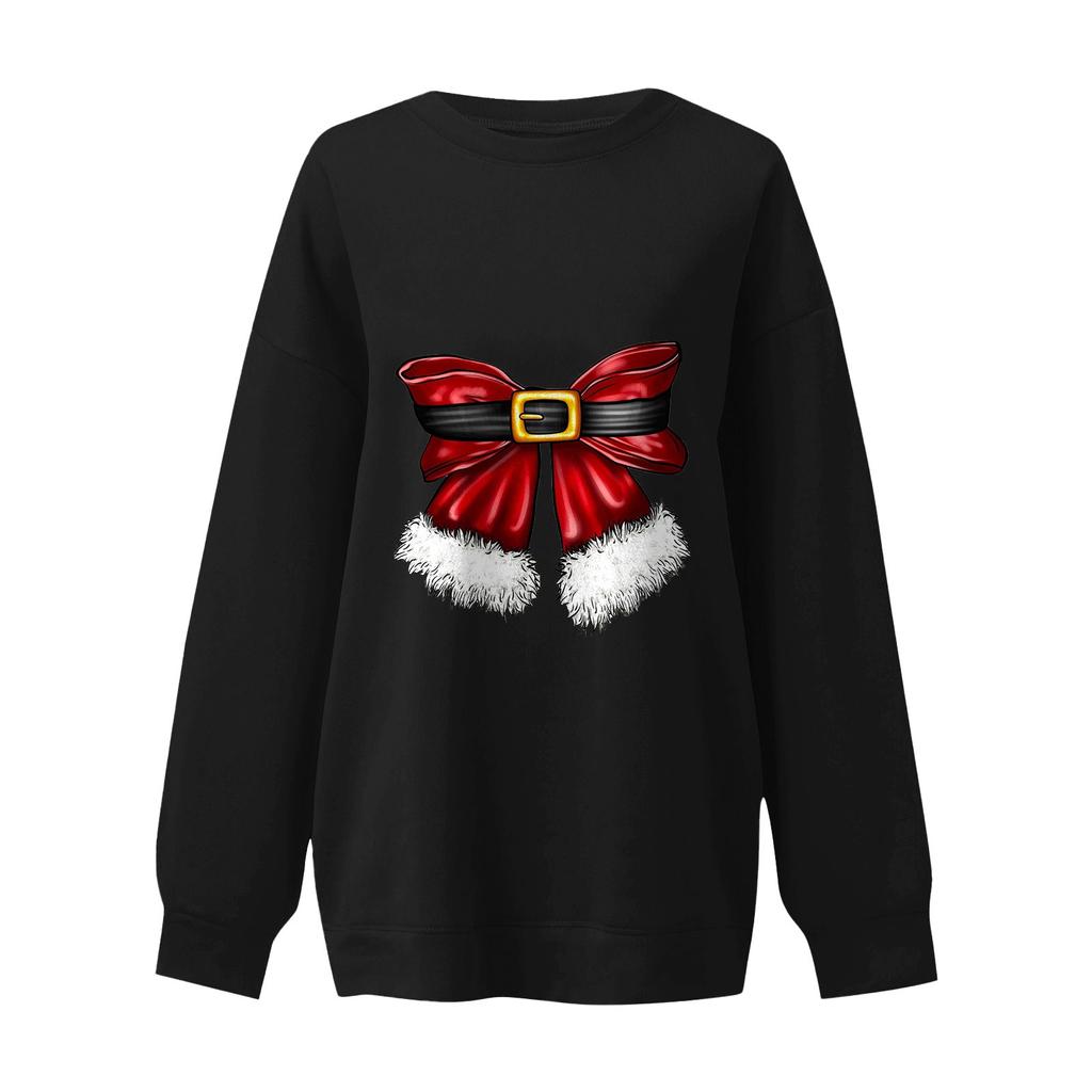 Женский повседневный свитер с круглым вырезом и длинными рукавами, рождественский принт, толстовка с капюшоном и длинными рукавами