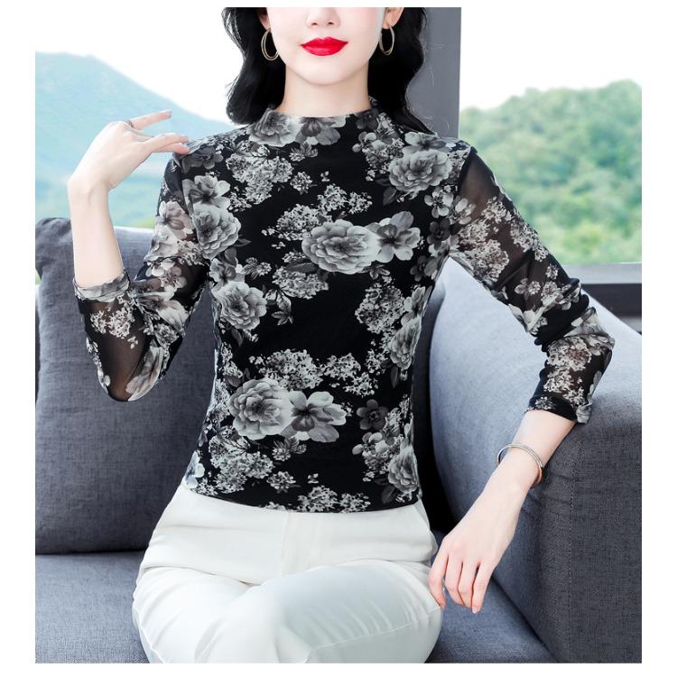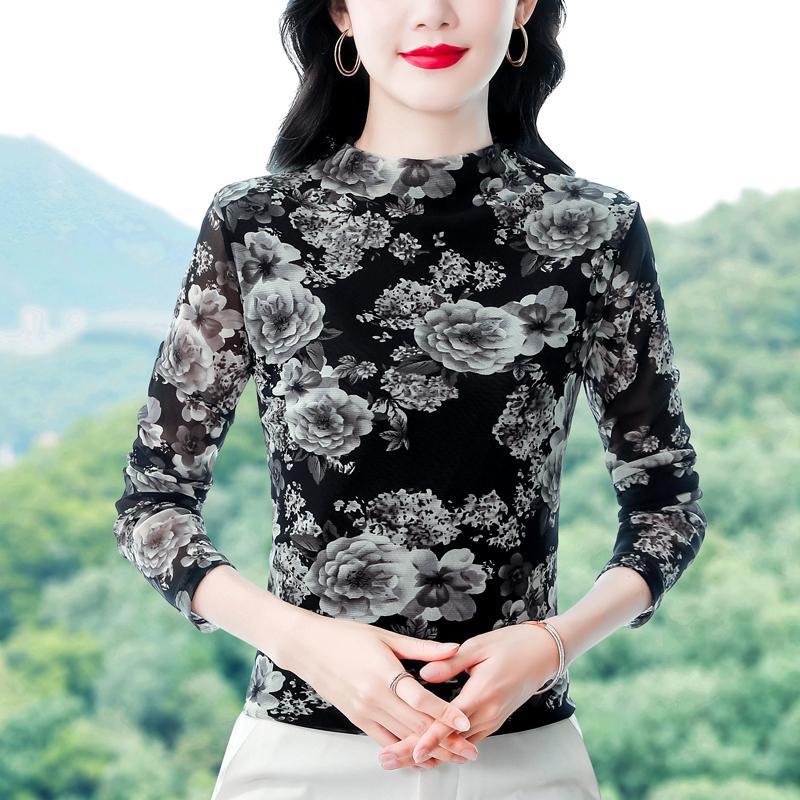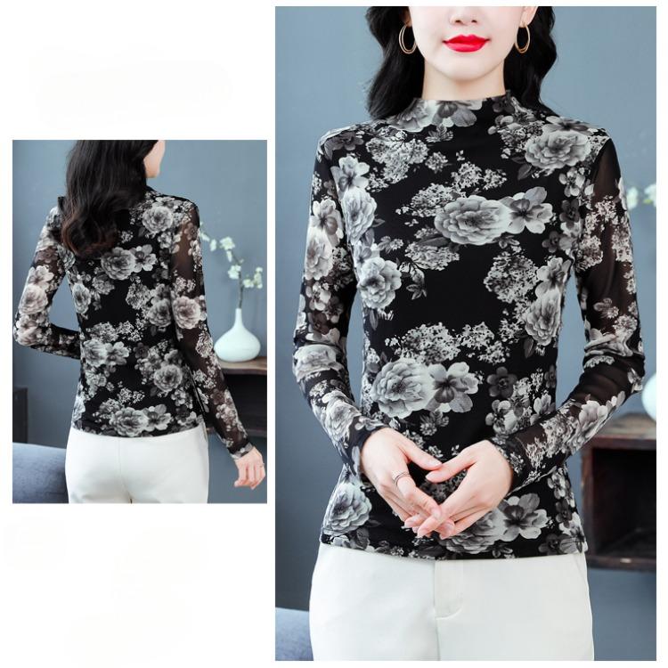 Модная сетчатая рубашка больших размеров с привлекательным принтом, идеально подходящая для многослойного образа осенью и зимой