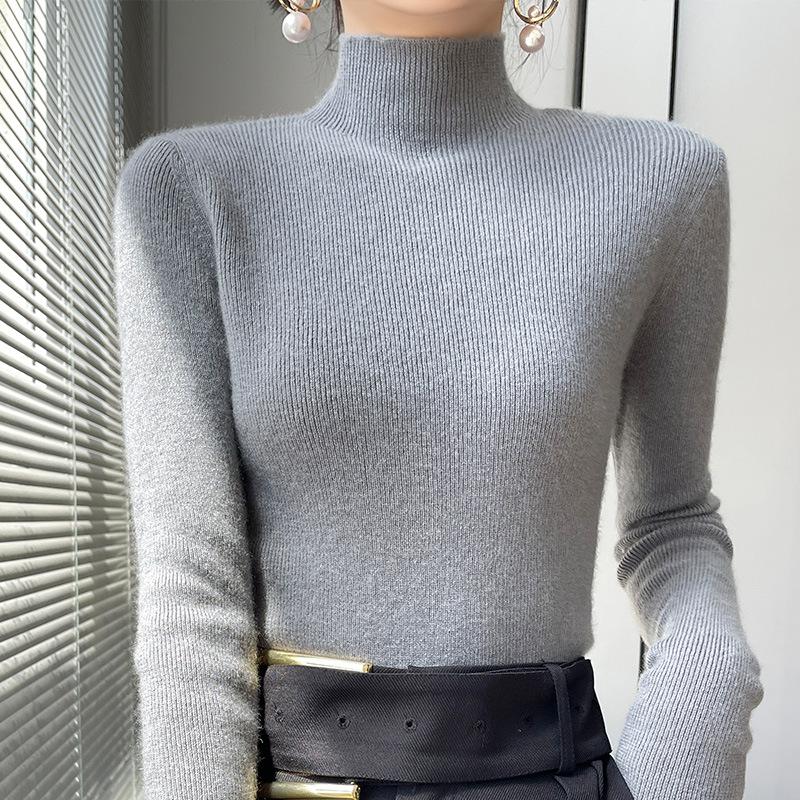 Женский осенне-зимний однотонный вязаный свитер с длинными рукавами, пуловер, полуводолазка, тонкий свитер с внутренней полоской