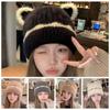 Плюшевая шапка с кошачьими ушками, женская зимняя шерстяная шапка, новая осенне-зимняя симпатичная вязаная шапка для защиты ушей у девочек