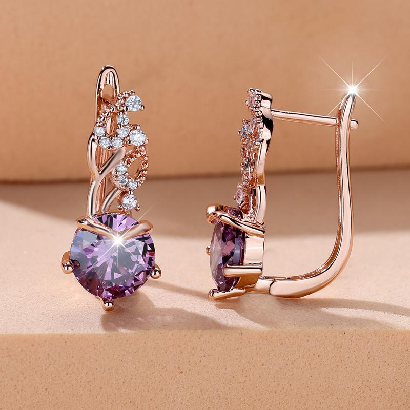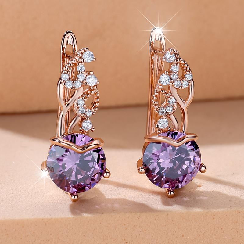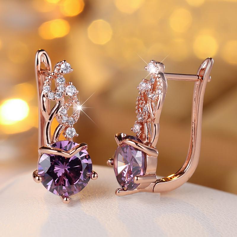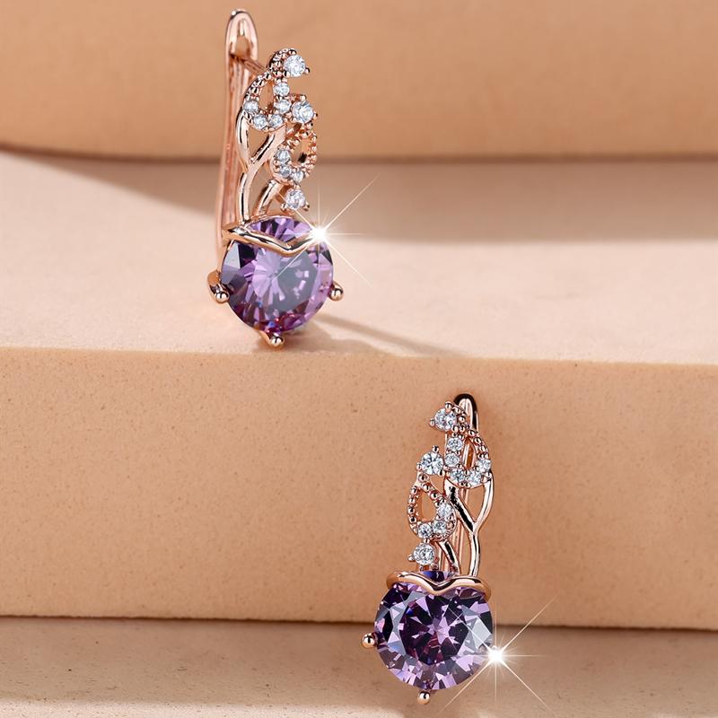 Великолепные фиолетовые серьги-подвески из циркония для женщин, модные ювелирные изделия цвета розового золота, свадебные аксессуары