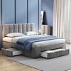 Кровать-платформа с обивкой размера «full/queen size» и ящиками для хранения вещей. Изголовье с деревянными планками. Пружинный блок не требуется. — купить товар онлайн с бесплатной доставкой до всему миру!