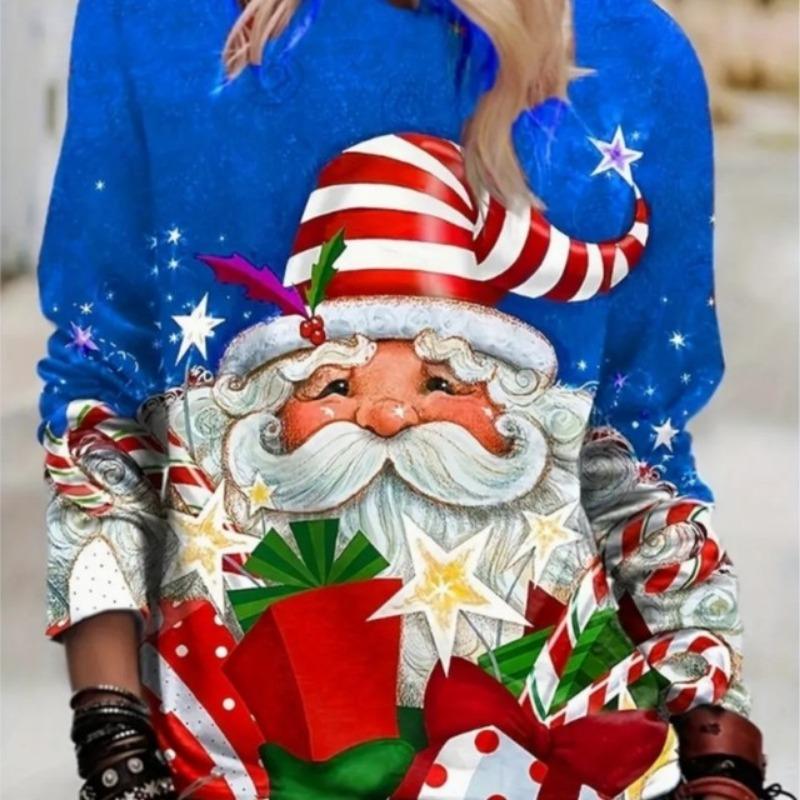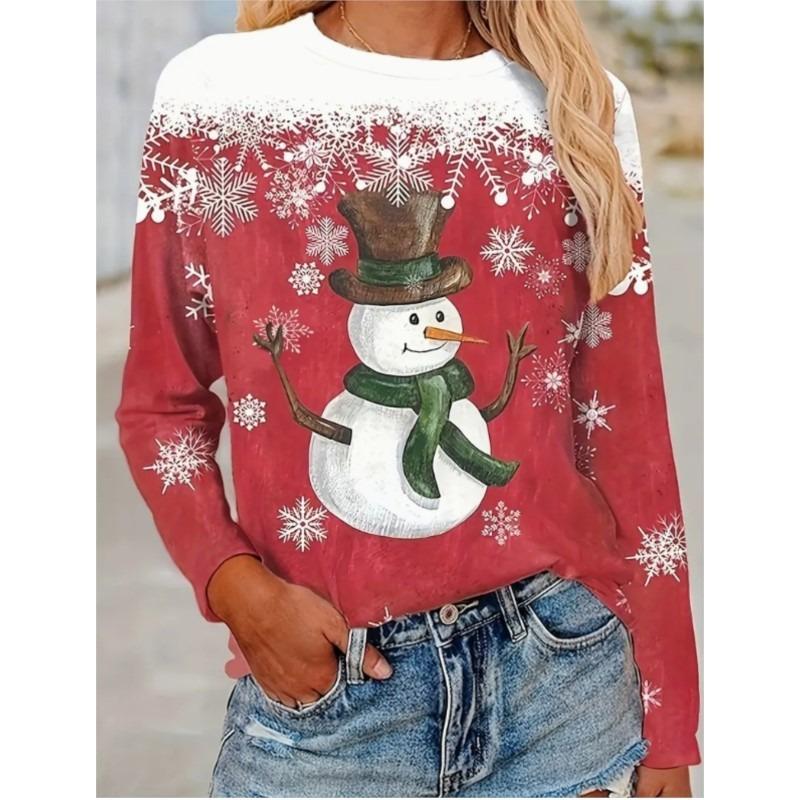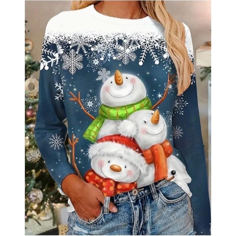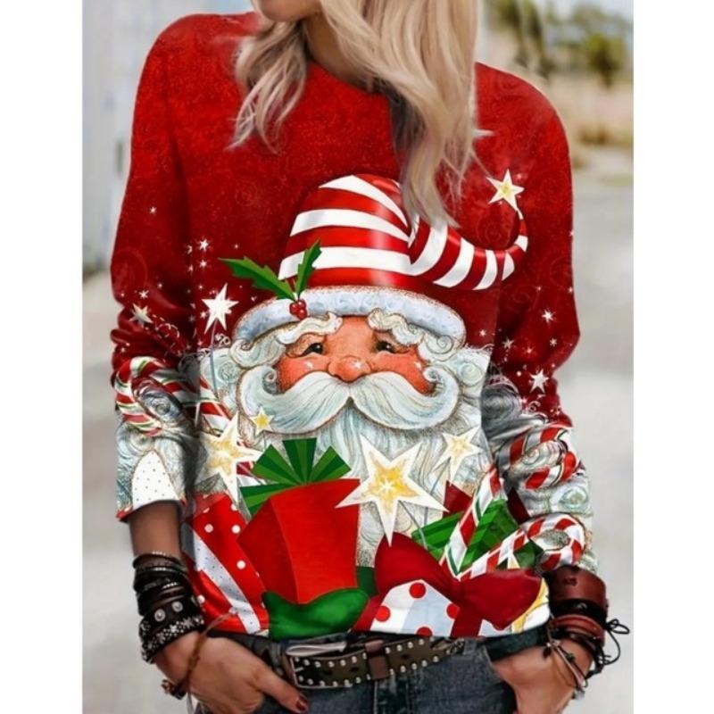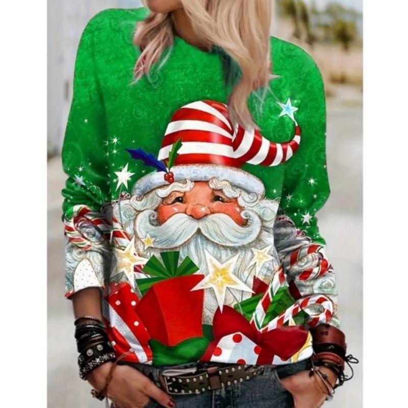Новая женская футболка с принтом в виде елки, круглый вырез, пуловер, милый стиль, футболка с длинными рукавами, женская, новый стиль