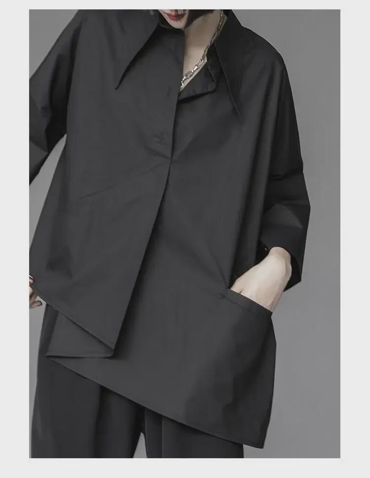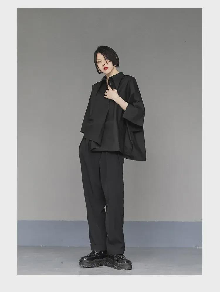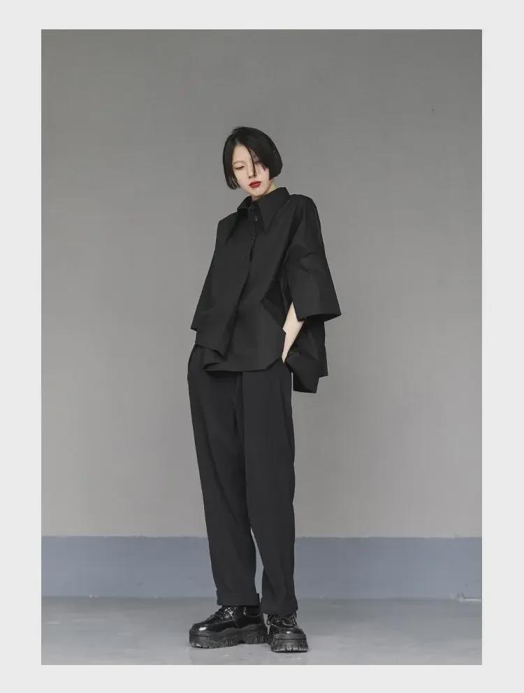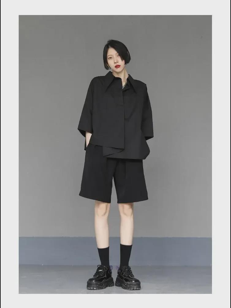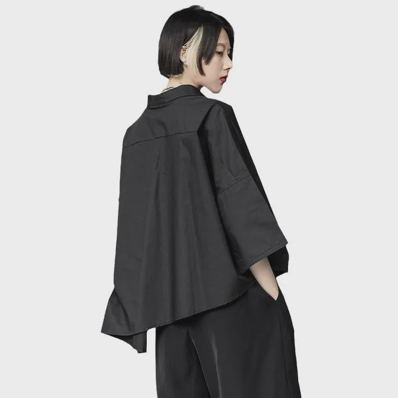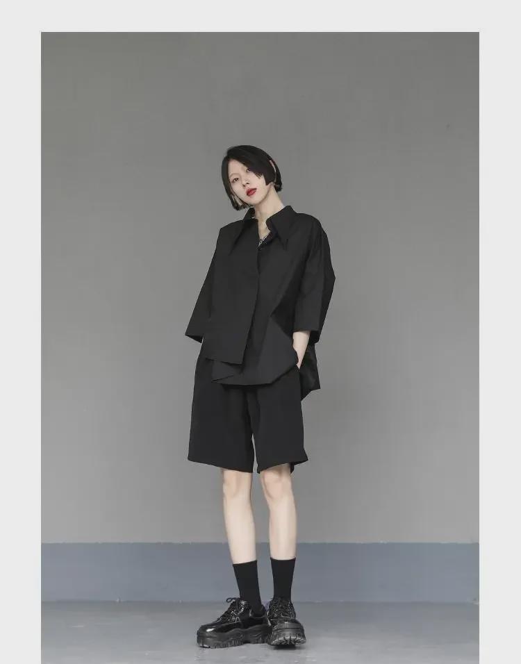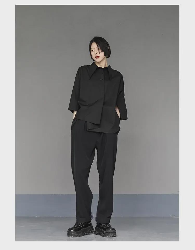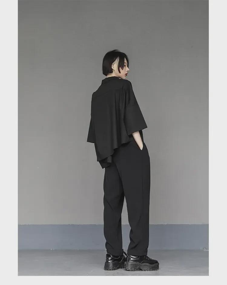 Женский черный свободный асимметричный короткий рукав стильный летний топ