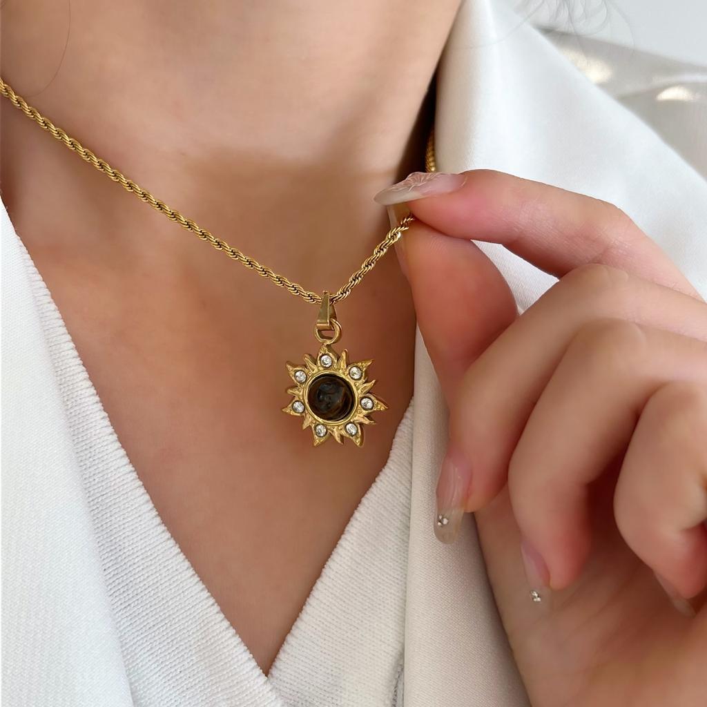 Ожерелье из камня тигровый глаз для женщин, осень и зима, горячая распродажа, легкая роскошная нишевая титановая сталь, не выцветающая цепочка для свитера