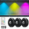 3шт RGB цветной шайба свет на батарейках USB перезаряжаемый подсветка под шкафом с пультом дистанционного управления