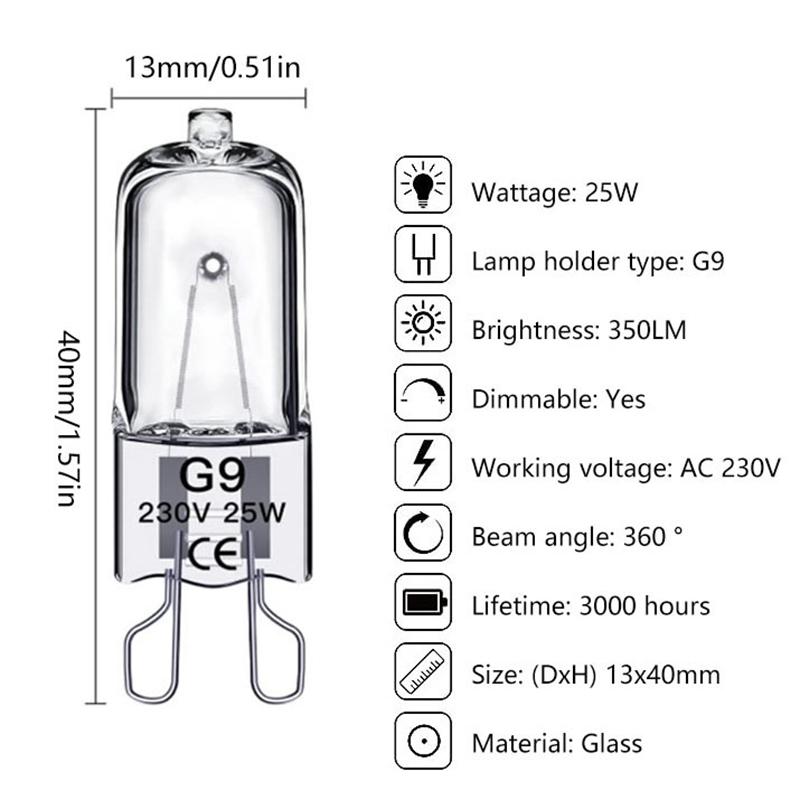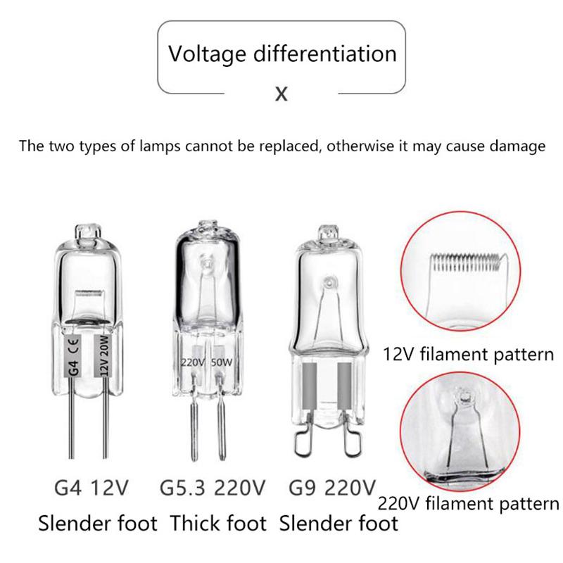 12 В 220 В 2-контактный тип G4/G5.3/G9 галогенные лампы 20 Вт/25 Вт/35 Вт/40 Вт прозрачные лампочки для домашнего декора