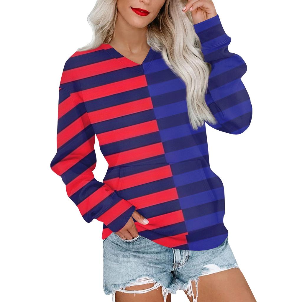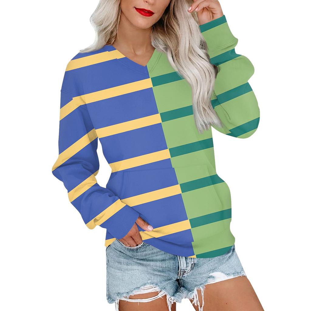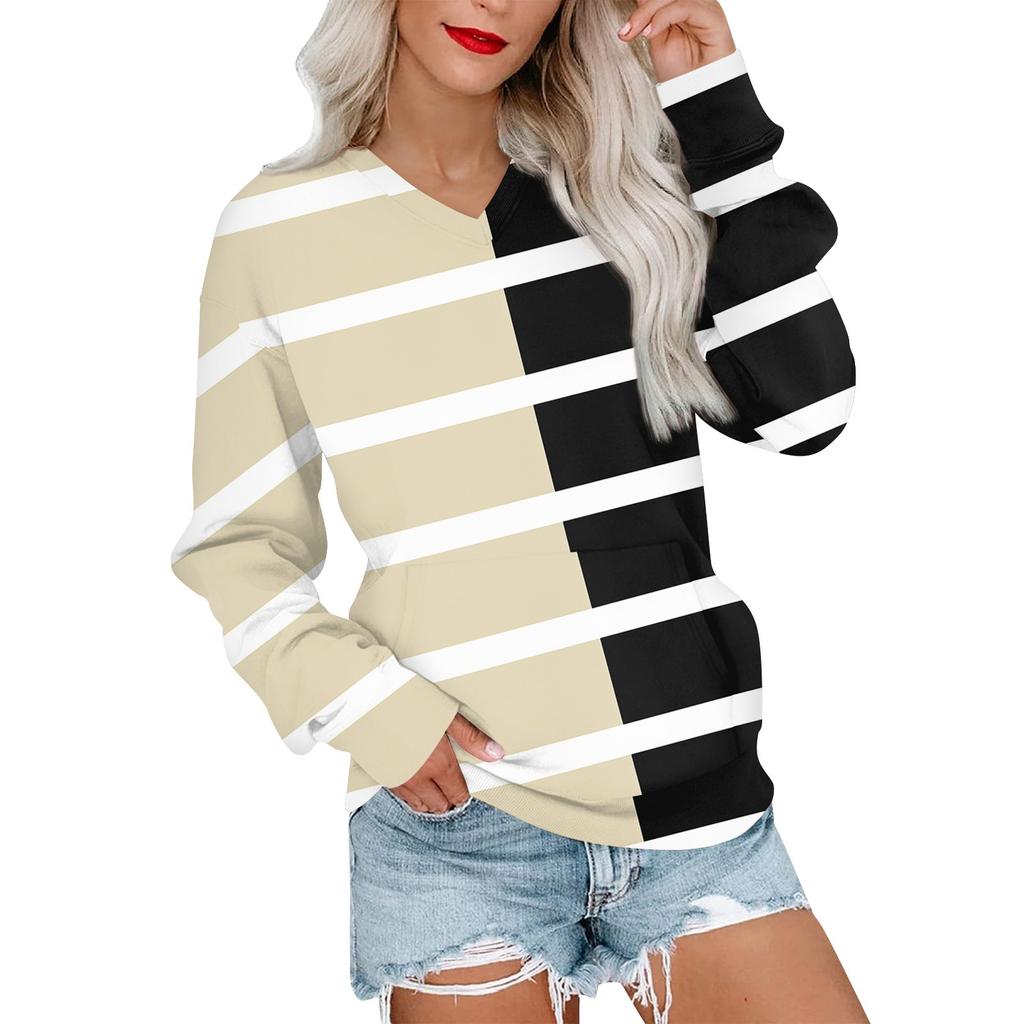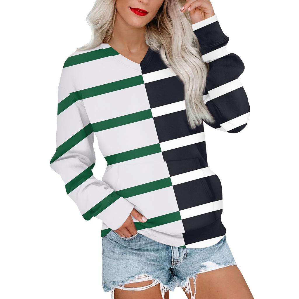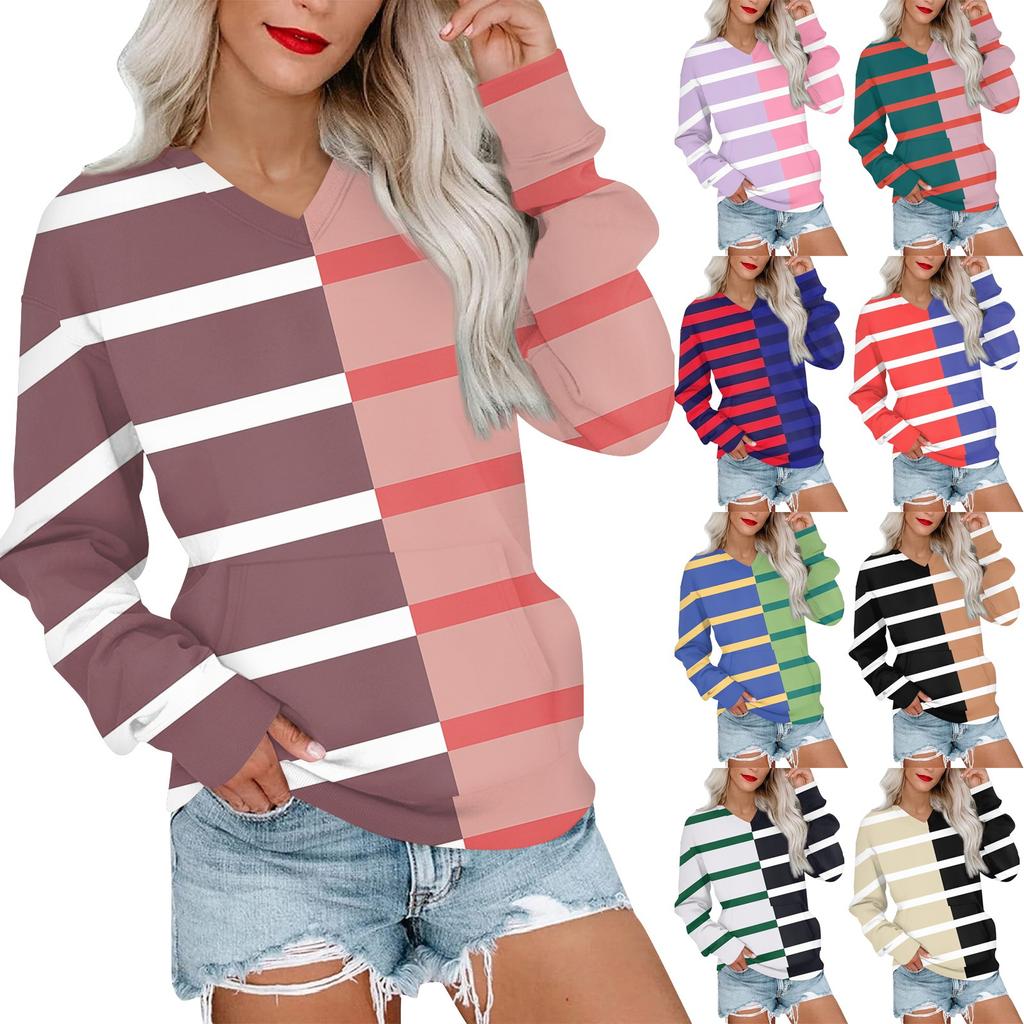 Женская повседневная модная полосатая толстовка с V-образным вырезом и длинным рукавом, легкая толстовка с карманами