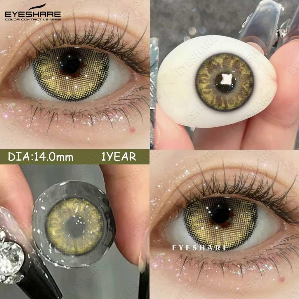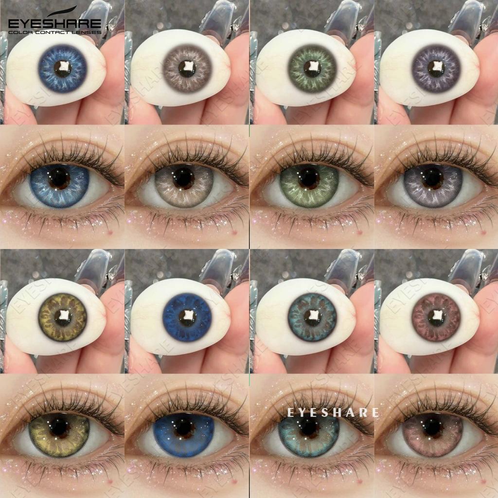 Eyeshare Цветные контактные линзы фиолетового цвета, комфортные цветные контактные линзы зеленого цвета, модные цветные контактные линзы коричневого цвета, мягкие линзы для глаз, 1 пара