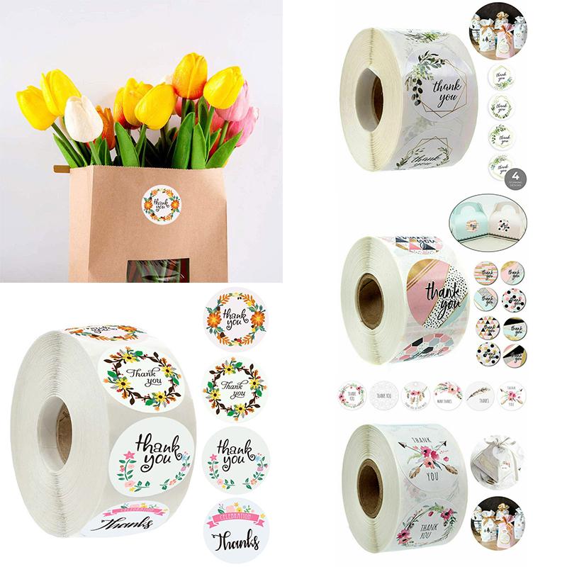 500 Pcs Floral Round thank you stickers Adhesive labels Waterproof for wedding party decorations Boutiques Wrapping Supplies