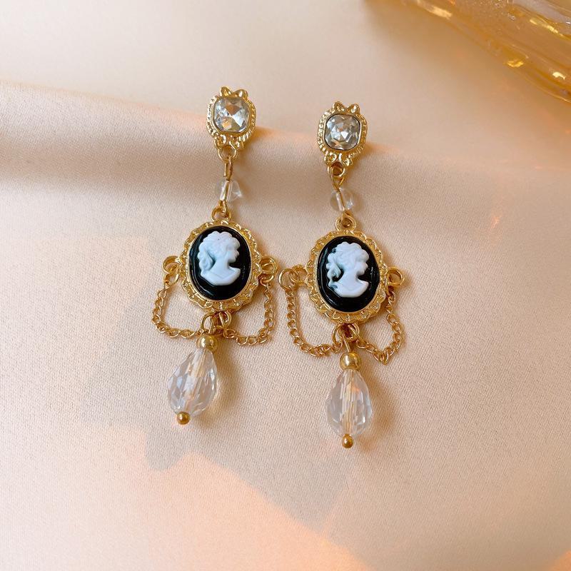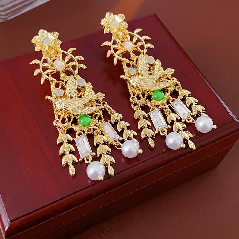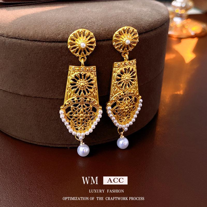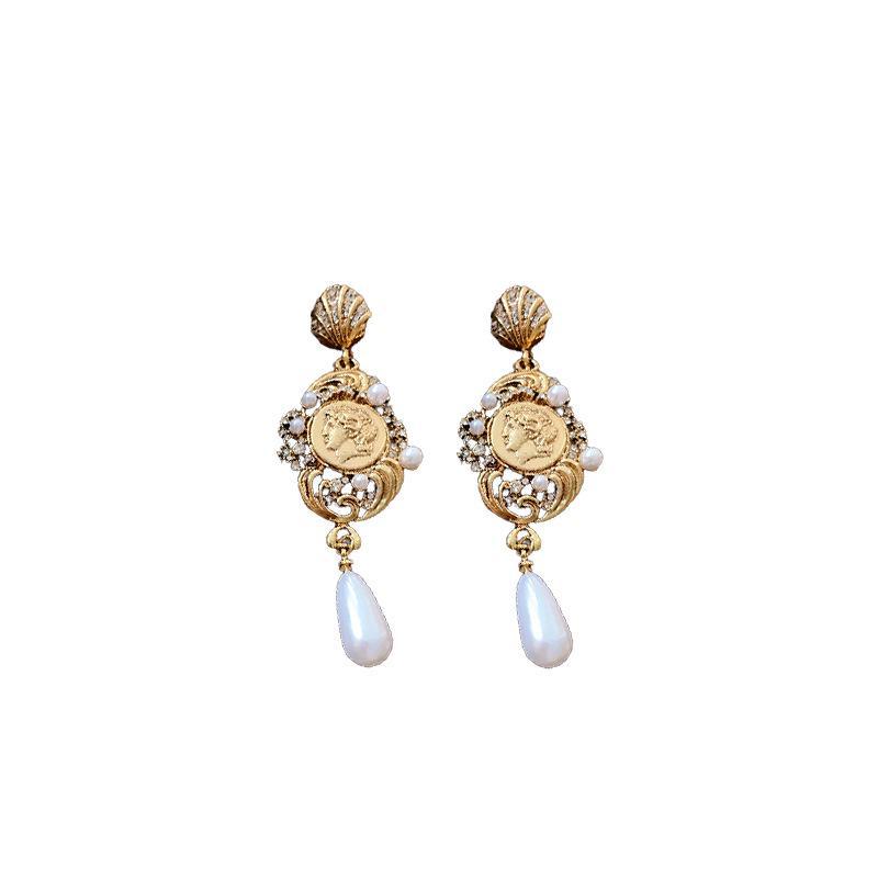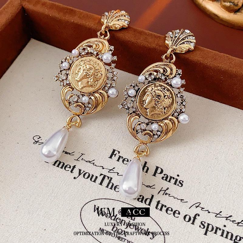 Винтажные серебряные серьги-иглы в средневековом стиле с жемчугом и бриллиантовыми каплями воды