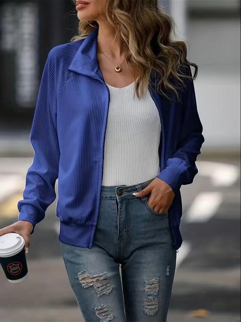 Женская повседневная вязаная куртка осень/зима — однотонная, с длинным рукавом, свободный крой, универсальная застежка-молния.
