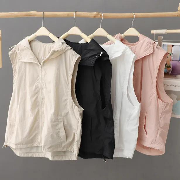 Женская однотонная простая свободная безрукавная солнцезащитная жилетка для спорта на открытом воздухе с капюшоном тонкая куртка