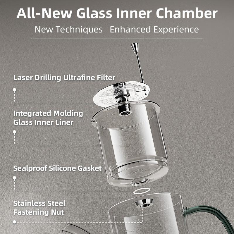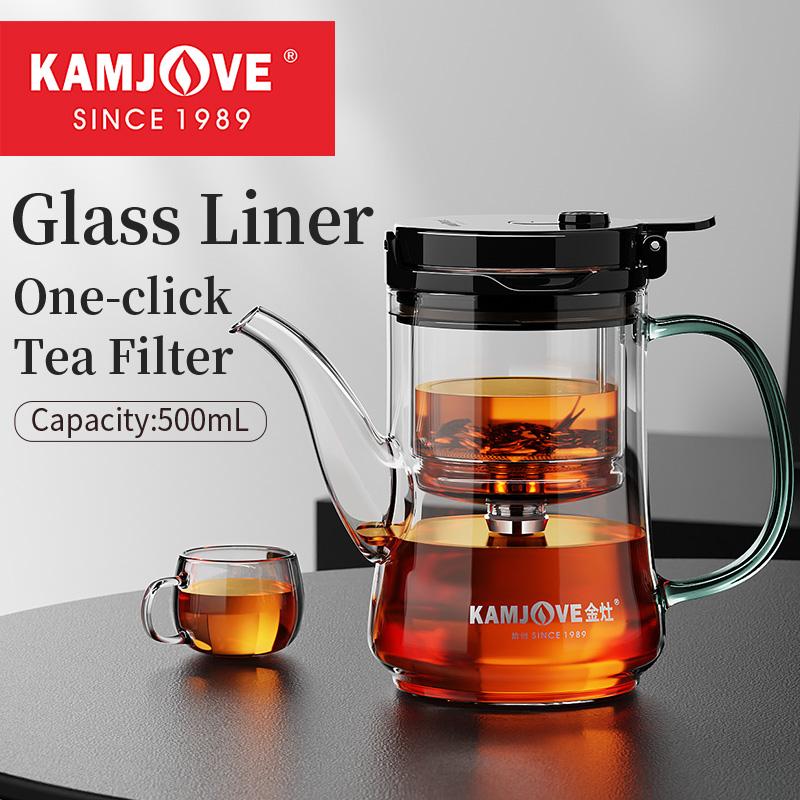 Чайник KAMJOVE с инфузором, полностью стеклянный фильтр, камера, пресс-тип, чайник для разделения чая и воды, офисный чайный набор для заваривания чая, фильтр для чая C