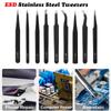 Набор из 6 прецизионных металлических пинцетов: Безопасный для электростатического разряда, острый, изогнутый, подходит для ремонта мобильных устройств, выщипывания волос, пересадки ресниц и бровей, с сумкой для переноски.