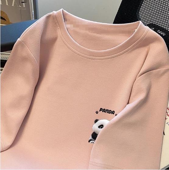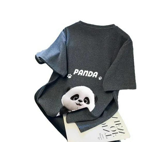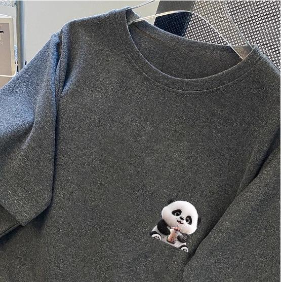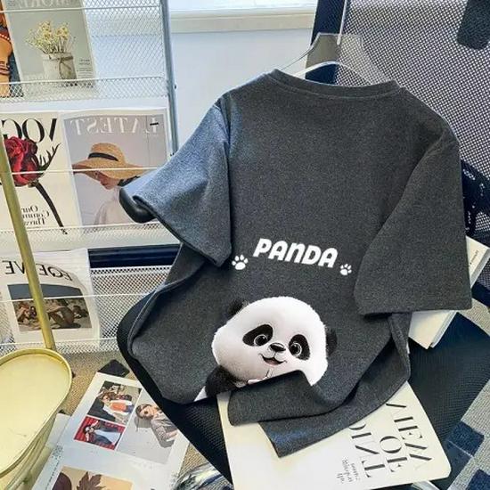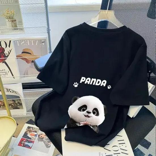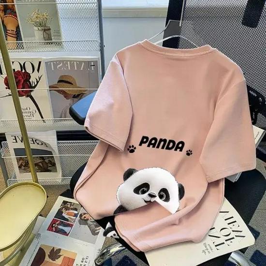Женская футболка свободного кроя с рисунком панды белого цвета и круглым вырезом, коллекция лето 2024 г.