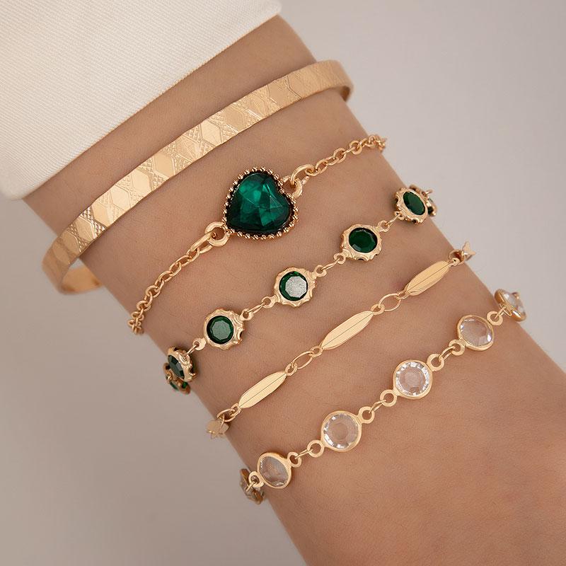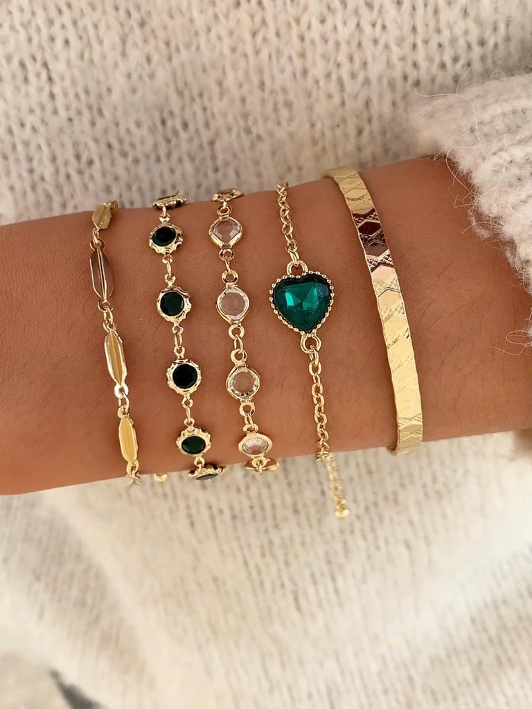 5 шт. модный креативный браслет-цепочка в форме сердца с цветочной инкрустацией из стразов, комплект ювелирных изделий для женщин и девочек, браслет из сплава Advanced Feeling