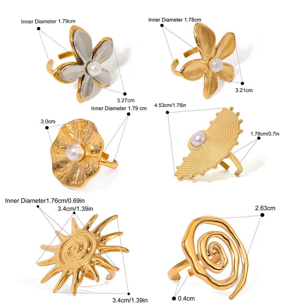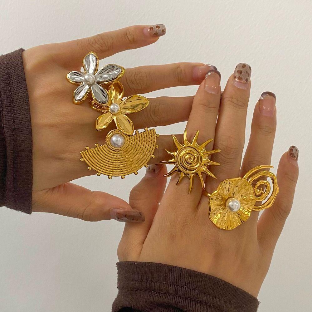 Металлическое гладкое кольцо с цветочным жемчугом, преувеличенное украшение для руки, новые открывающиеся кольца для женщин