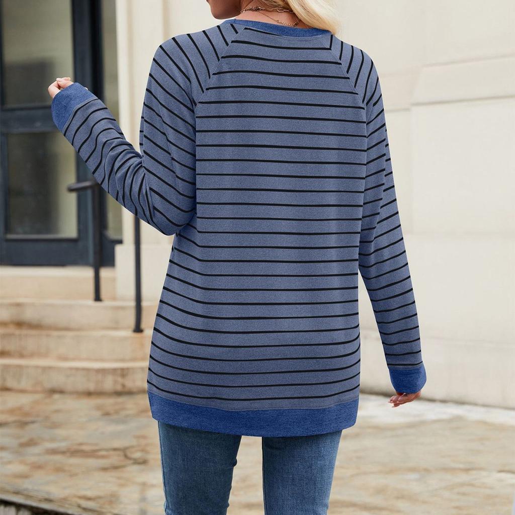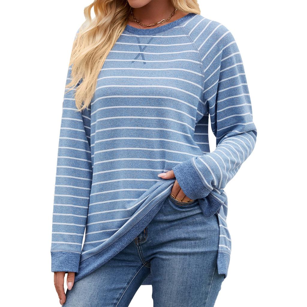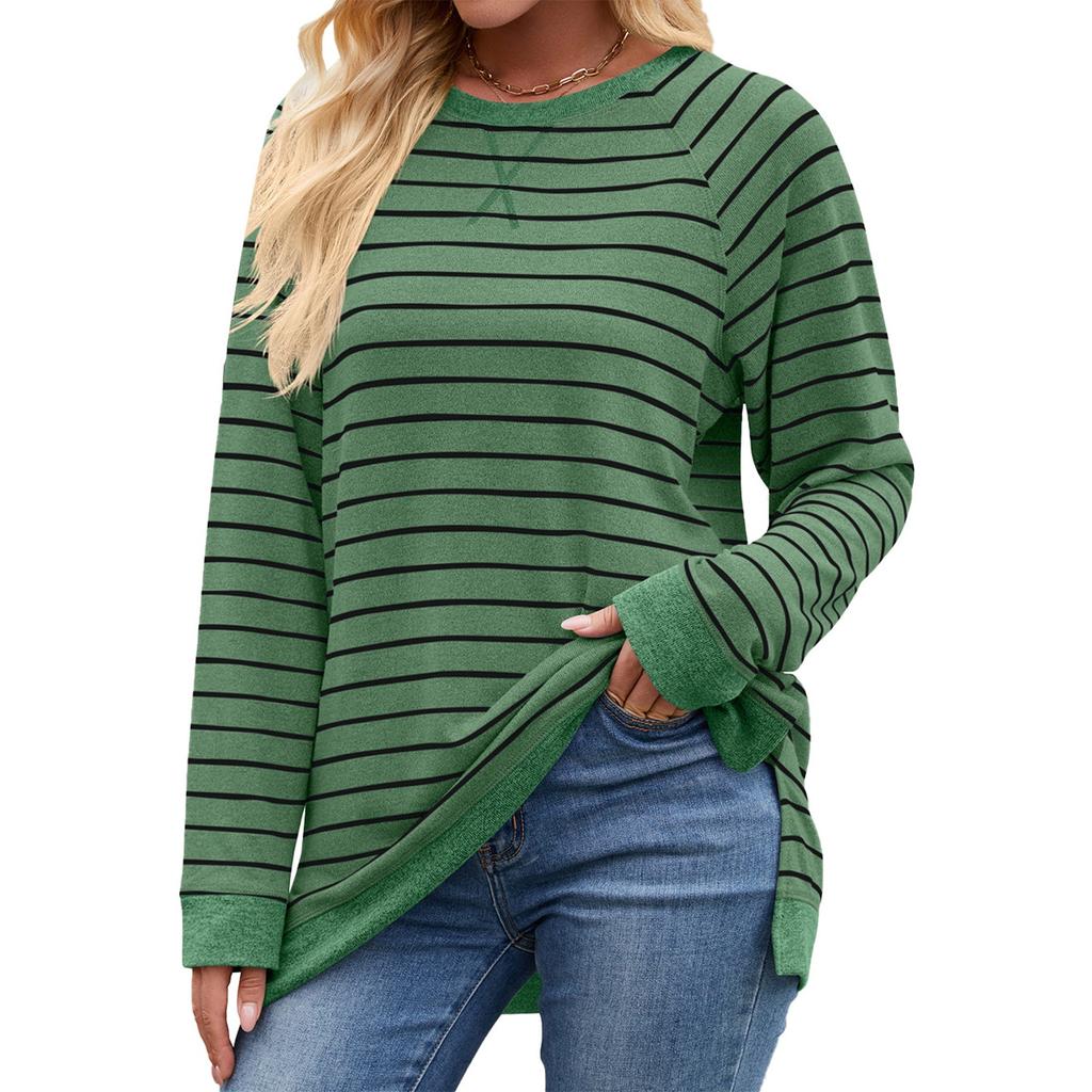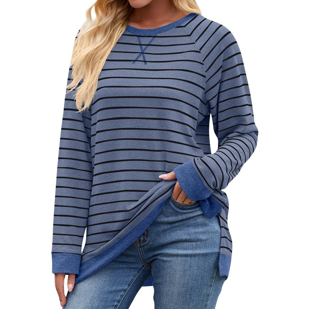 Женская модная полосатая футболка с круглым вырезом и длинными рукавами