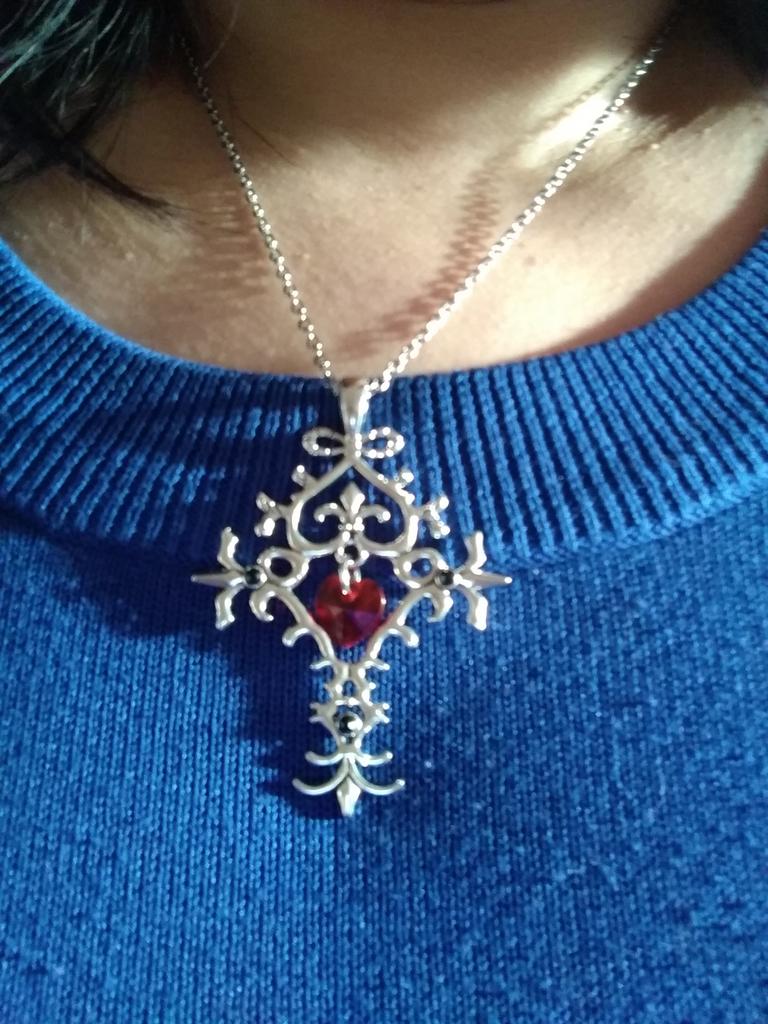 Vampire Diaries Necklace Fashion Vintage Sacred Heart Gem Crystal Cross Long Chain Pendant Necklace