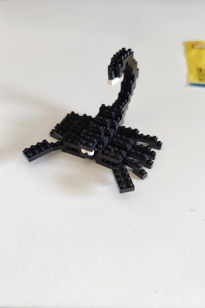 I bought this scorpion construction set 🦂 for my grandson who was thrilled with it. The bricks are smaller than Lego. Just follow the instructions that come out in the box and that's it. Also 5-6 more pieces come out. The pieces fit together easily so they are of excellent workmanship. The package arrived in 15 days so super fast. Excellent value for money. Recommended purchase. Leave a comment and follow me on Instagram @ fbclark89