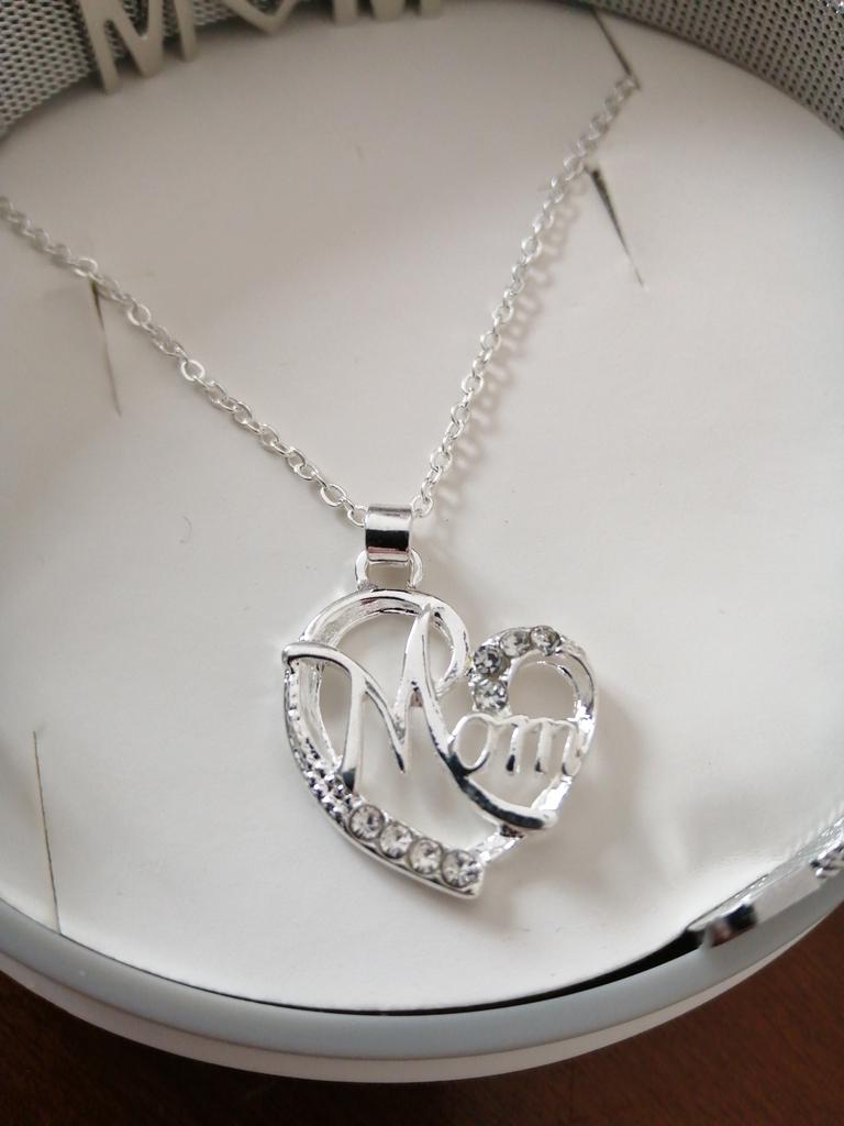 Mom Heart-shaped Pendant Diamond Letter Alloy Rhinestone Women Necklace Jewelry Mother Gift