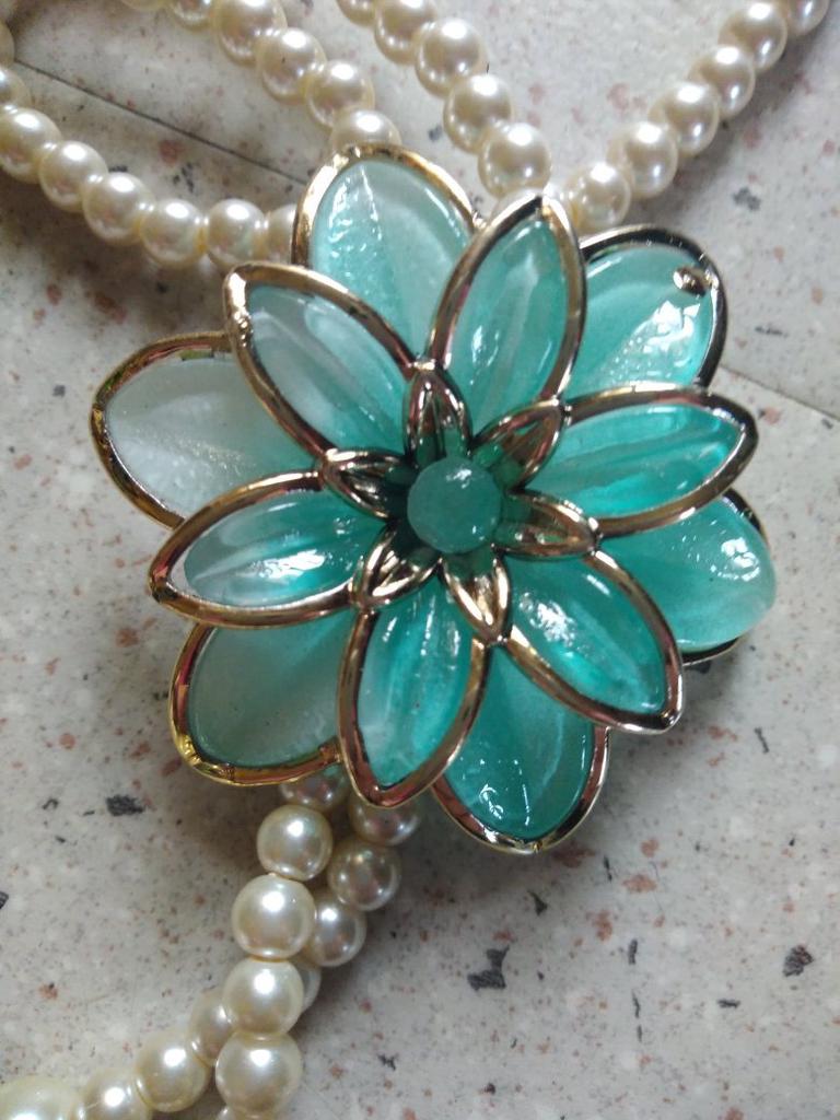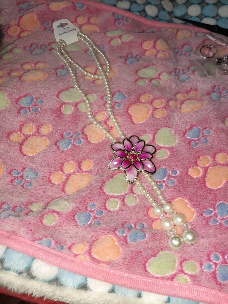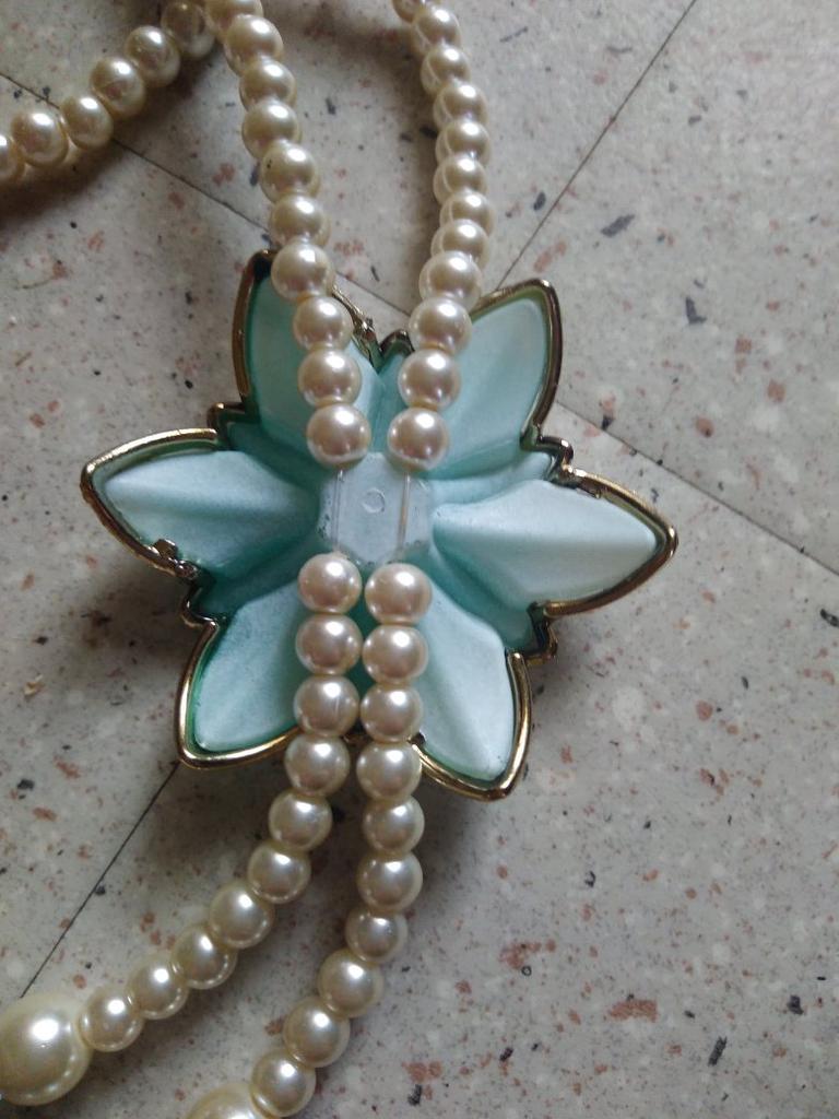 Pretty pearl necklace..fragile..on a dress.it will have a nice effect..the flower is very fancy...