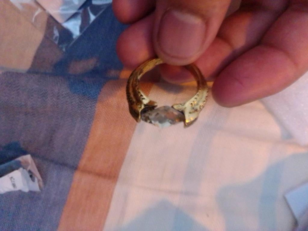 The jewel wasn’t attached when I received it but a little glue fixed that problem, it is very detailed and pretty I love it, it greatly resembles The Gaunt’s ring from Harry Potter and will be perfect for my costume
