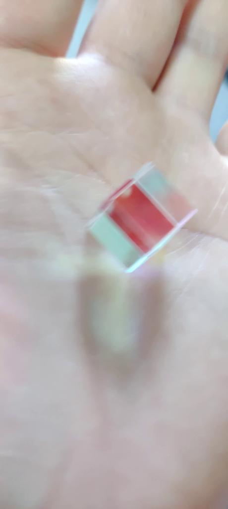 It's about 1cm^3 so don't be surprised by how small it is 😅 It's really nice and fun to play with in the sunlight.
