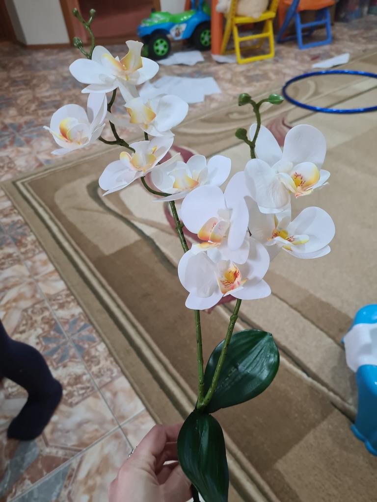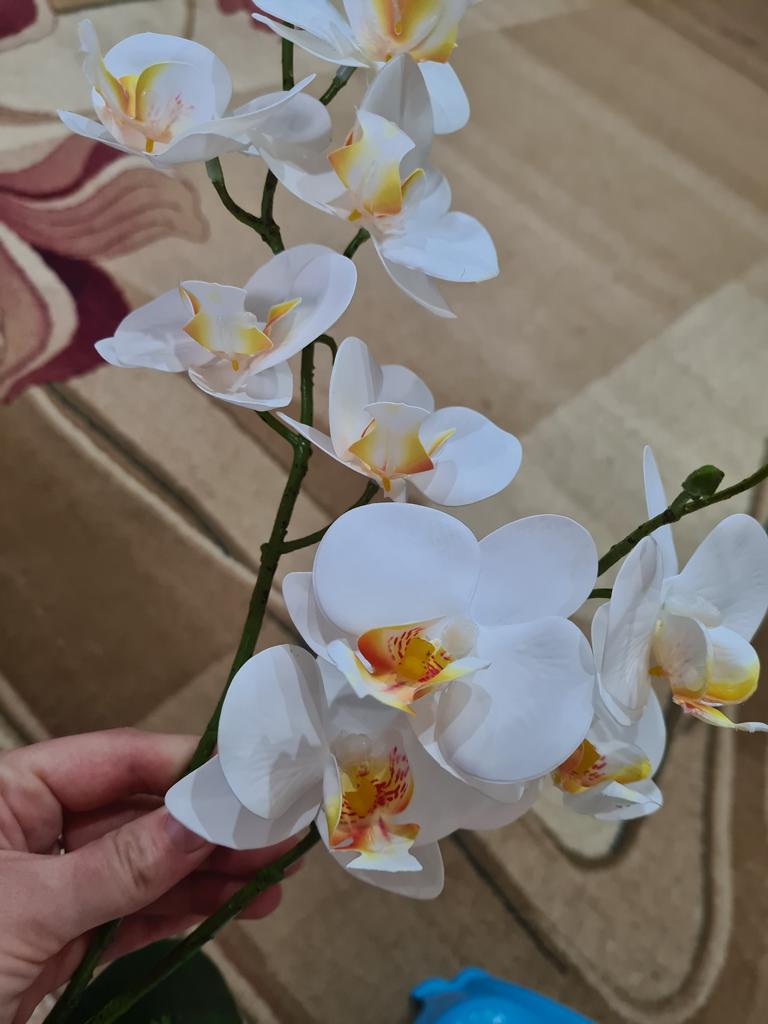 Good looking artifficial orchid flowers. They do look very natural due to the soft material the flowers are made of: I guess it is latex. Have ordered two, because they are of a medium size and only one looks poor in a pot. Satisfied by the order, Thank You, seller! 🙏🏼